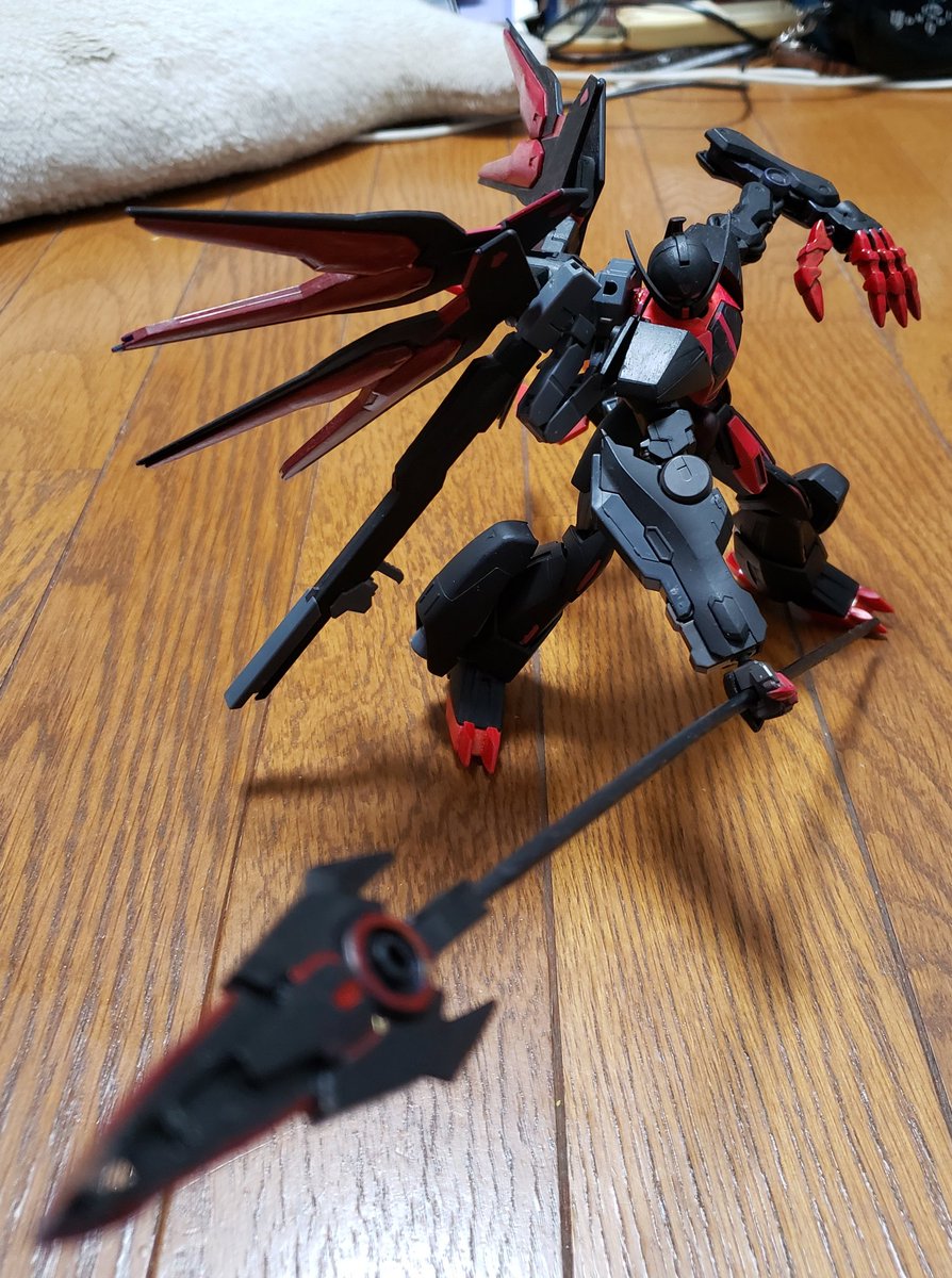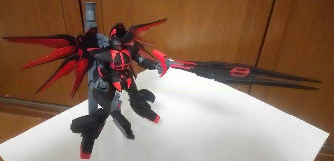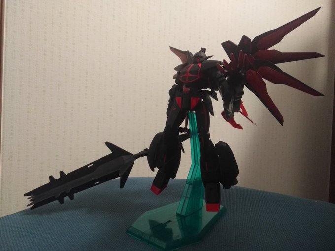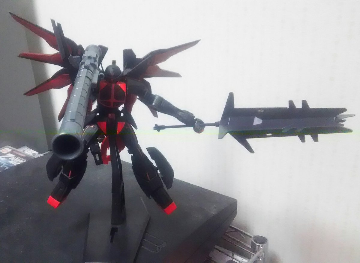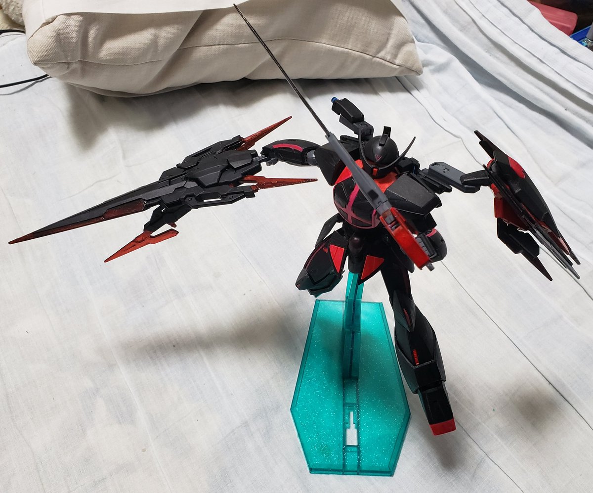#リンプラに見せてね どうしてもバックパックを盛り過ぎるせいで前傾姿勢にならないと自立が厳しくなるんだけど、その姿勢がむしろ悪魔的な威圧感になってて気に入ってます✨ #ガンプラ #ガンプラの画像貼るとRTされると聞いて