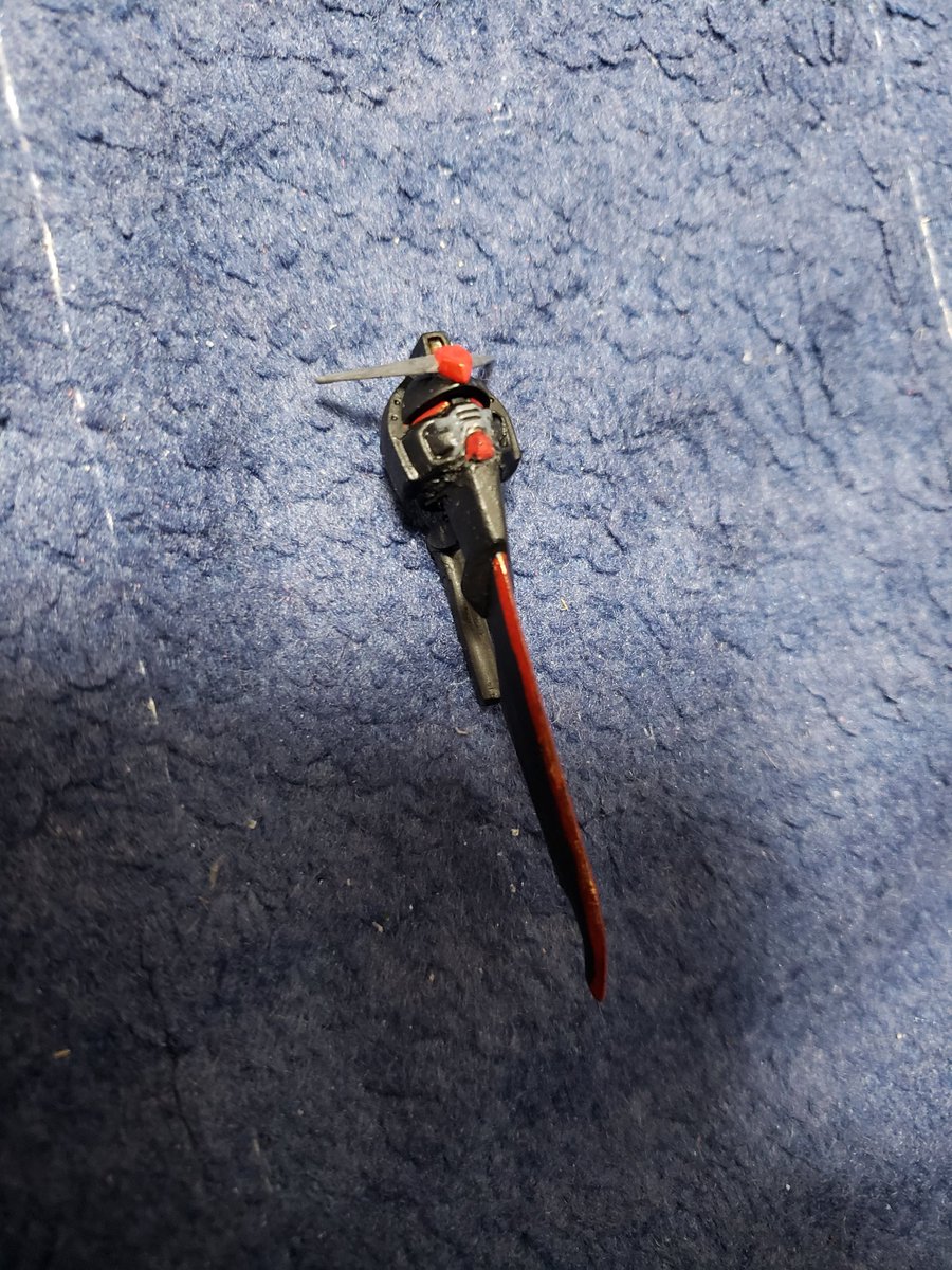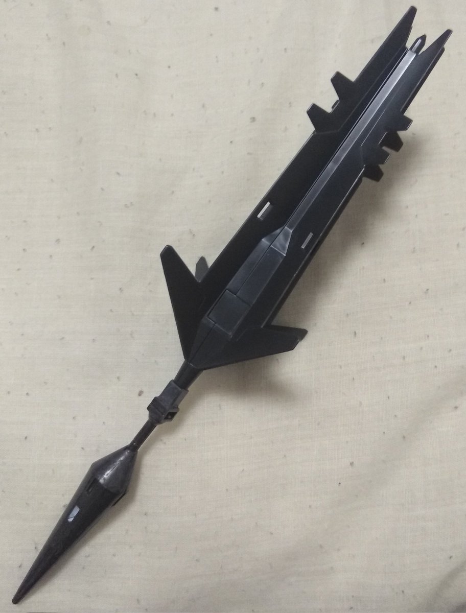 #リンプラに見せてね これまたランナーの1番長い部分を切り取って作製した長槍。 名前は僕の憧れの戦国武将、本多忠勝さんの愛槍「蜻蛉切」をもじって「ドラゴンフライ・スラッシャー」。(ピーコックスマッシャー的ネーミングセンス #ガンプラ #ガンプラの画像を貼るとRTされると聞いて