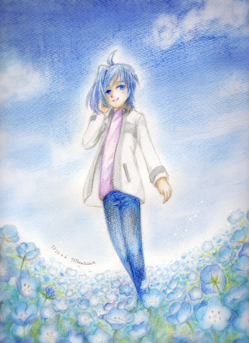 7 12 アイチお誕生日おめでと〜🎂🎊🎉 2023分は今描いているので過去絵ですがネモフィラアイチさんを🌸 #先導アイチ生誕祭2023 23/06/06 00:00