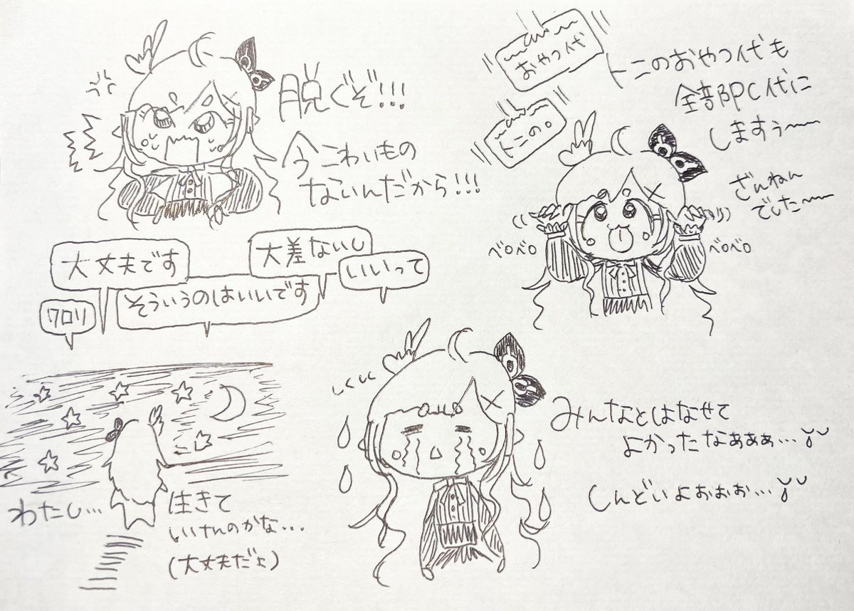 35 130 本日のらくがき 解き放たれた京子、 放し飼いの両リスナー、 囚われたオリバー教授。 #クリエイツ轟京子 #絵バンス オリバー教授のリスナーさんと思しき方々のコメのセンス光りまくってたので、勝手にいっぱい引用しました。 twitter.com/725ntc/status/… 23/05/26 19:44
