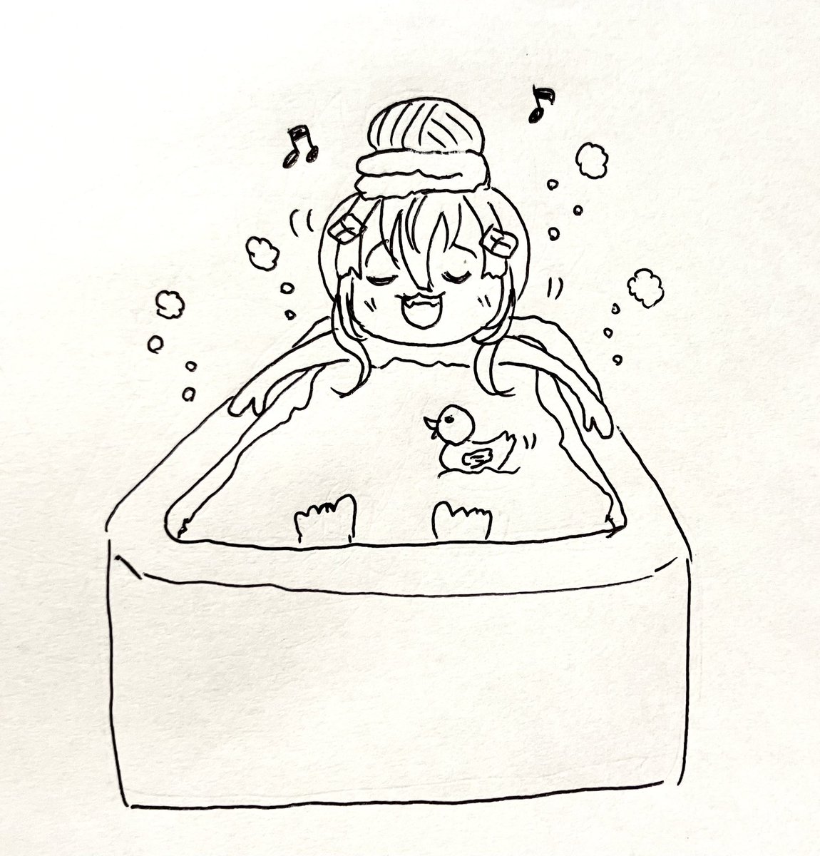 本日のらくがき 日本でお風呂を堪能される魔王様🛀 #Nari_Art