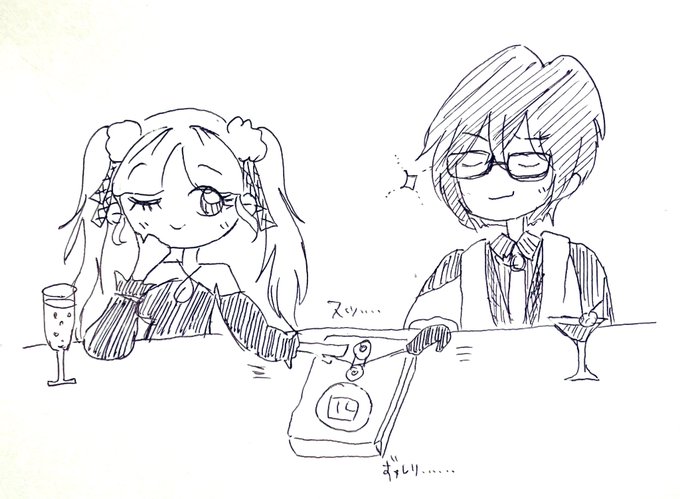 0 2 本日のらくがき 今宵バーにて、ソムリエによる選書の受け渡しが秘密裏に… #クリエイツ轟京子 #四季彩画 23/06/07 03:40