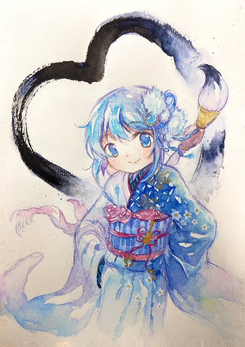 マギレコ晴れ着さやかちゃん・水彩 描き初め 描けば出る!!!!