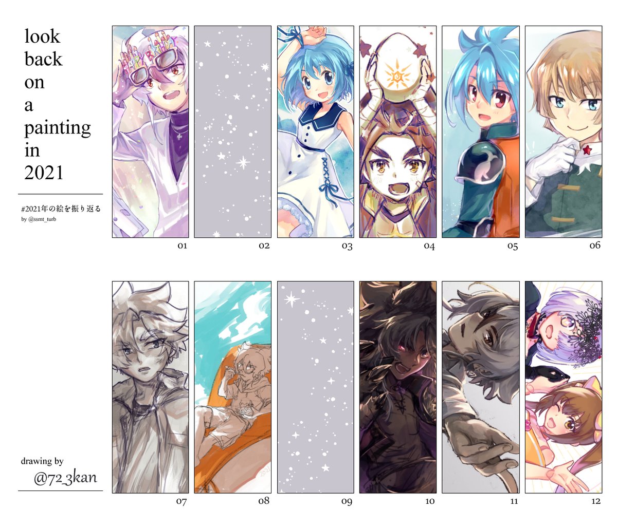 #2021年の絵を振り返る この手のテンプレで歯抜けのことある!?😂後半の力尽きが著しいですが思ってるよりはなんかあって良かった…今年も見ていただいてありがとうございました!🙌✨