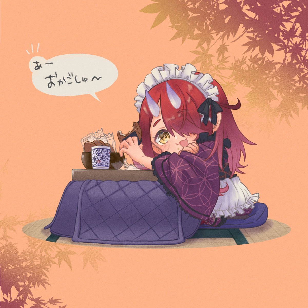 59 233 ちょーぜつかわいいメイド様👹🍘💕 ちゃぶ台と炬燵で迷ったので二つとも描きましたん🥰✨ #ばあちゃんこれ見て ↓に背景セリフ無しも添えておきます 22/10/16 20:24