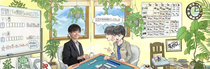 黄河プロのヘッダーとアイコンを描かせて頂きました。実写とイラストの融合作品です😳ホワイトボードのお題に当てはまる和了が出て驚いていたり、NEWサインが飾ってあったり、麻雀語録本が置いてあったりと、黄河プロのアイディアが盛り沢山の1枚に仕上がっております✨是非ズームして見てみて下さい✨ twitter.com/oukawanondayo/…