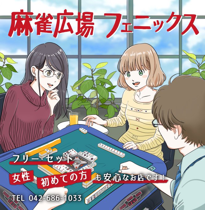看板イラストを描かせていただいた麻雀広場フェニックスさんで、本日堀内正人さんゲストの超豪華大会が開催されます✨(もしかしたらあと1名すべりこめるやもしれません) twitter.com/majongsquareph…