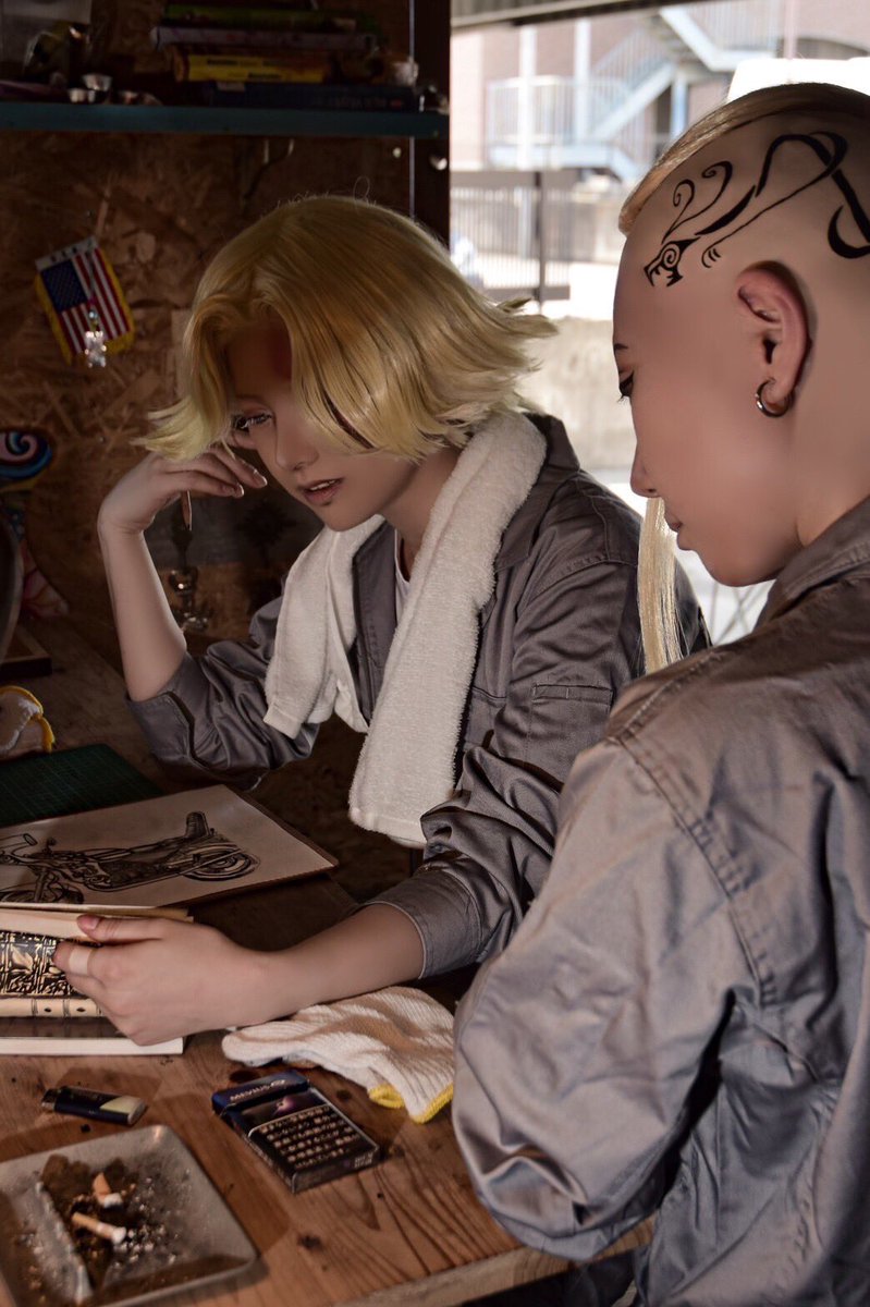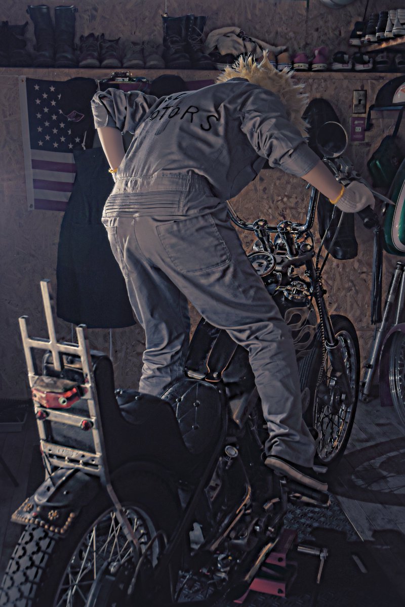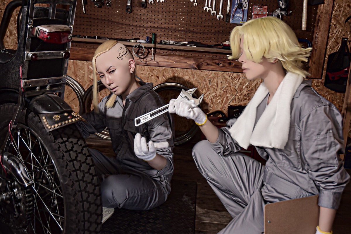 コスプレ/東京リベンジャーズ 乾 青宗 1枚目/この写真気に入ってるんですけど、試しにエンジン掛けるイヌピー 2、3枚目/アメリカンバイク乗った姿 イヌピー/捺雅 📸/立華さん 撮影場所提供/ヒロくんinstagram.com/karmina.garage