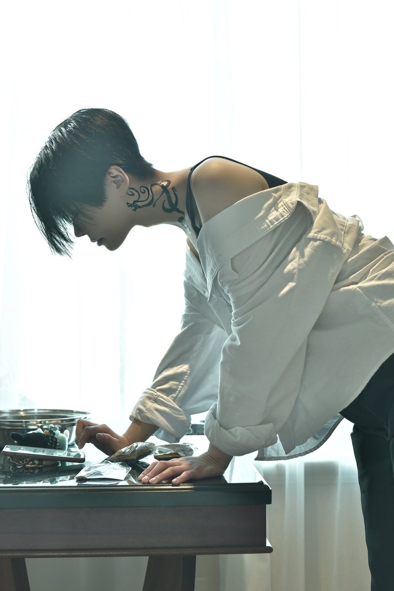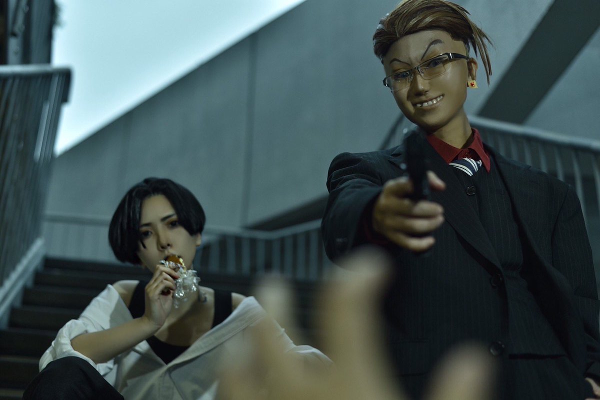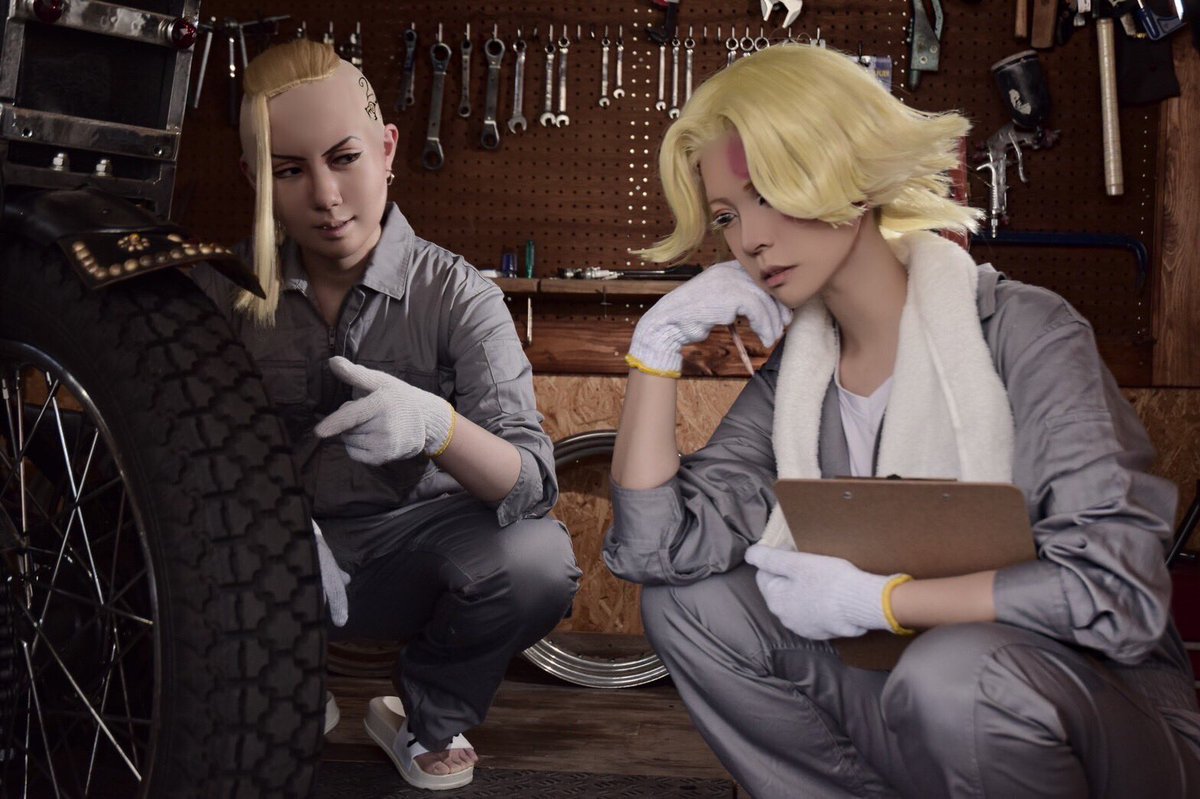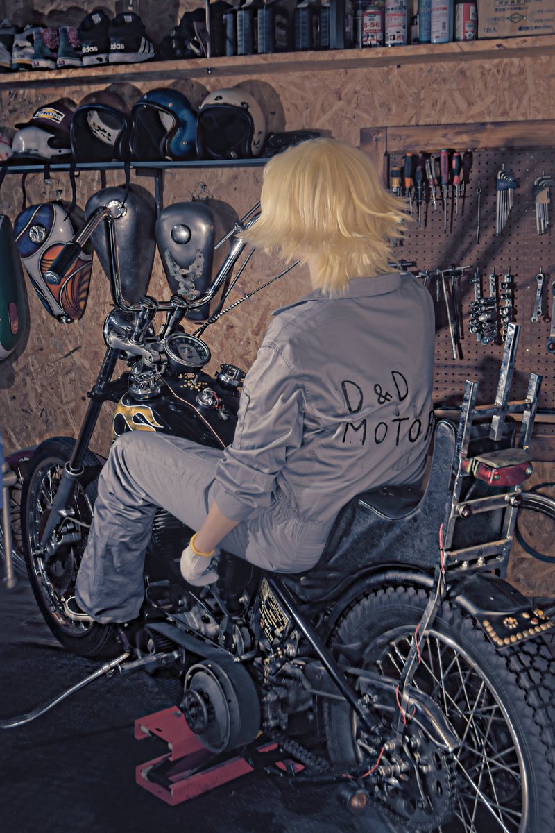 コスプレ/東京リベンジャーズ 乾 青宗 1枚目/この写真気に入ってるんですけど、試しにエンジン掛けるイヌピー 2、3枚目/アメリカンバイク乗った姿 イヌピー/捺雅 📸/立華さん 撮影場所提供/ヒロくんinstagram.com/karmina.garage