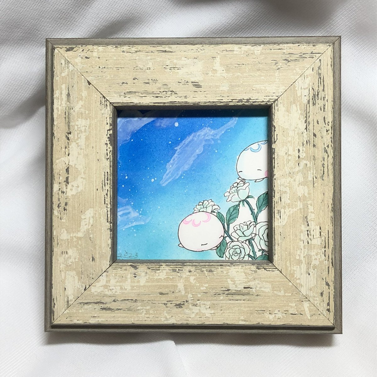 ミニミニアクリル額(ドローイング) いつのまにかよく描いてる アクリル板を重ねて絵を描いてるやつです。 手のひらに乗っちゃうミニミニサイズな額で 白のアクリル絵の具だけで描いたドローイングです。 お買い得品! #7thFactory