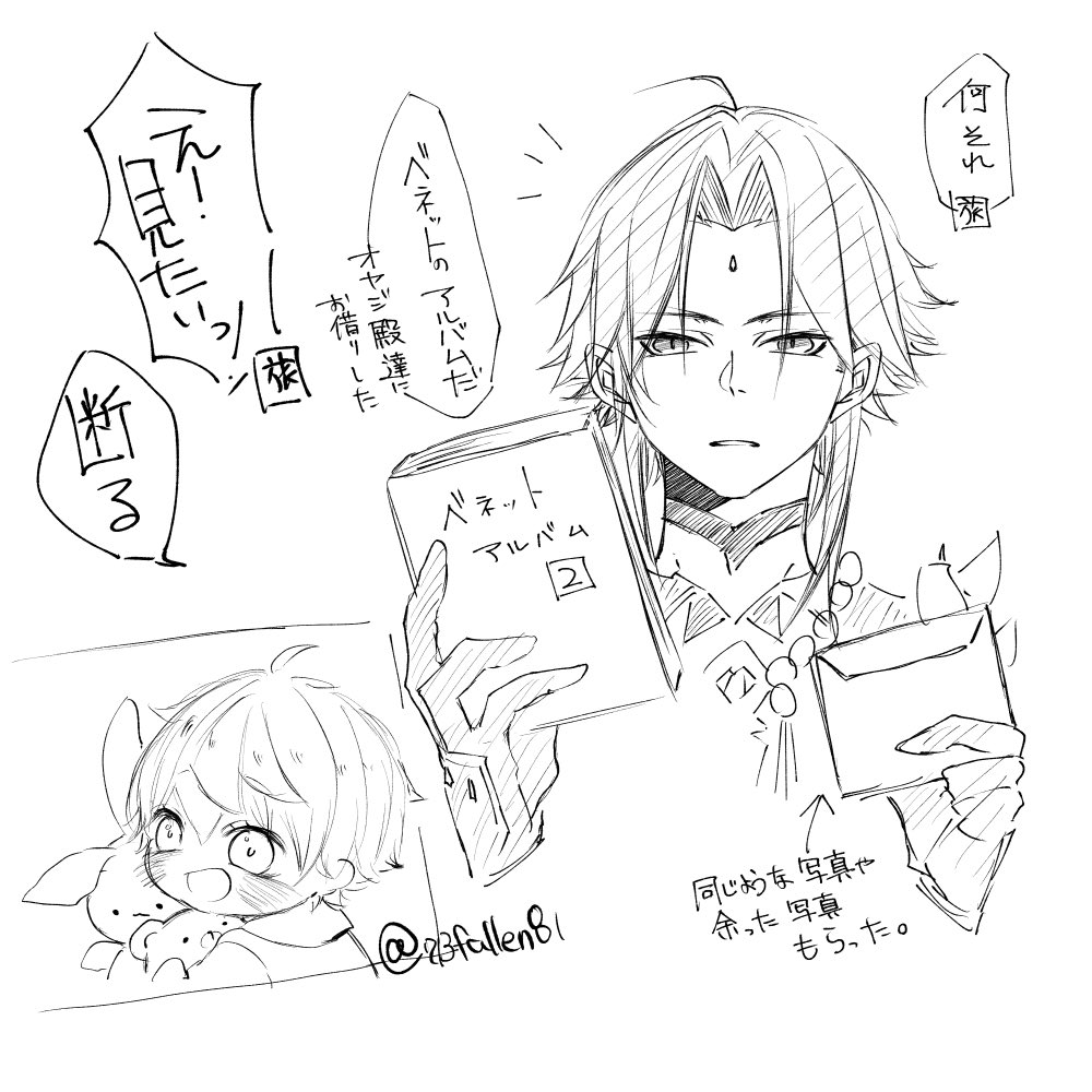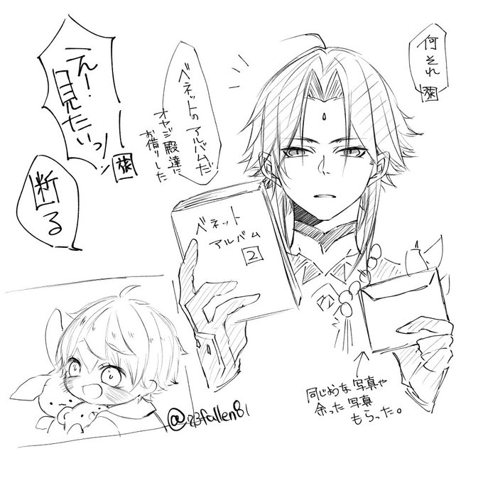 3 20 しょべね rkgk ベネくんの小さな頃のアルバムを貸してもらった魈くん。 23/02/11 21:50
