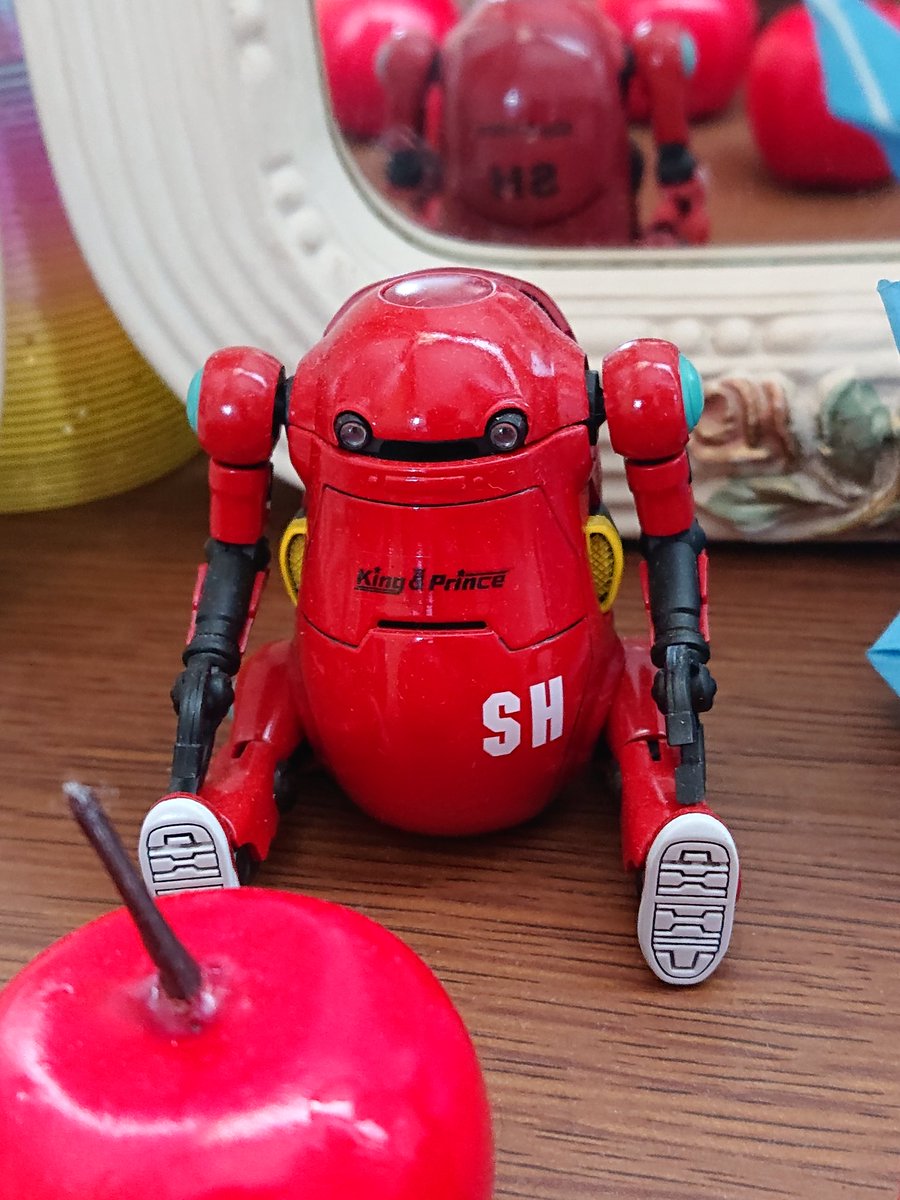 娘の前作ってあげた キンプリ(King & Prince)仕様のウィーゴが、娘の部屋で りんごと一緒に飾られてるのが 凄く良い感じになってる🍎 #メカトロウィーゴ #キンプリ