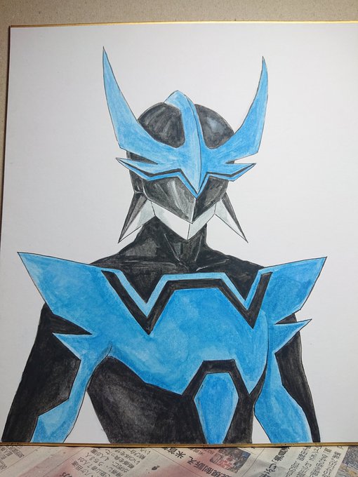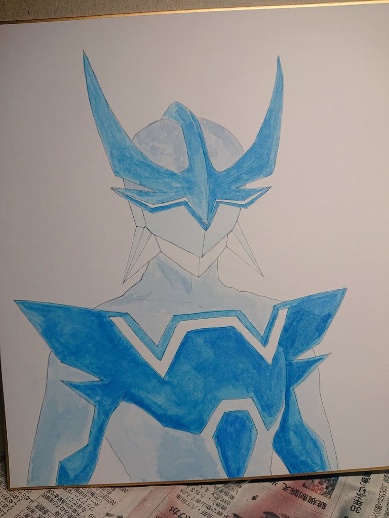 大好きな ウイングマン 桂正和先生の画集をお手本に 色紙に描いて水彩で塗ってみた! 黒色多めなので難しかった😱 意外とうまくいった気もする😆 チェイング!!! #ウイングマン #桂正和 #水彩