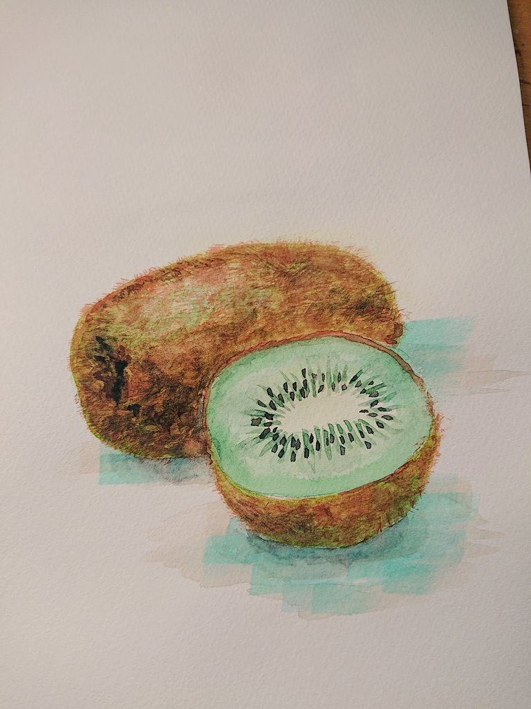 0 10 お手本見ながら、、、 正確にはYouTube見ながら キウイ描いた 色作りと水加減が難しい そして 沢山塗り方のテクニックがあるのね 筆のタッチうまくいきません キウイの毛はうまくいったかな?? #水彩画 21/06/22 11:31