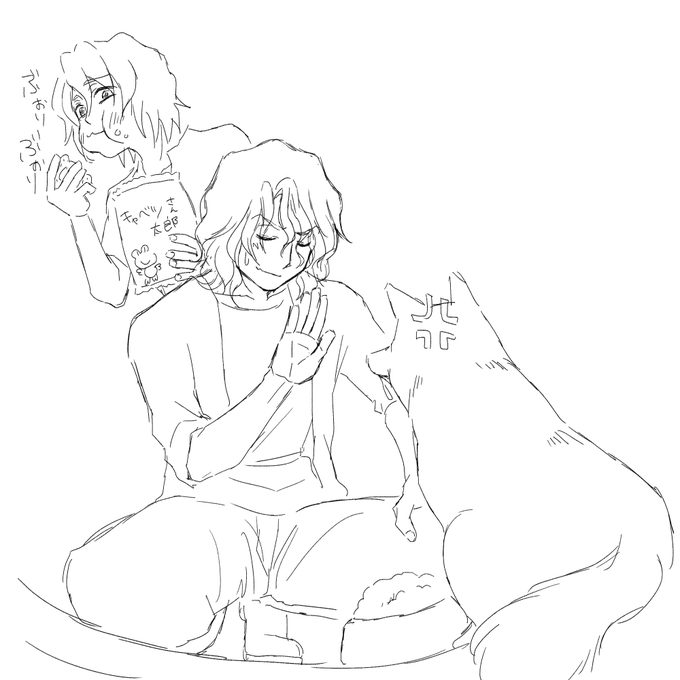 17 45 お題「おあずけ」 おあずけ中のショコラを煽る来主(このあと甲洋に怒られる) #ファフナー版深夜の真剣お絵描き60分一本勝負 22/10/11 23:06