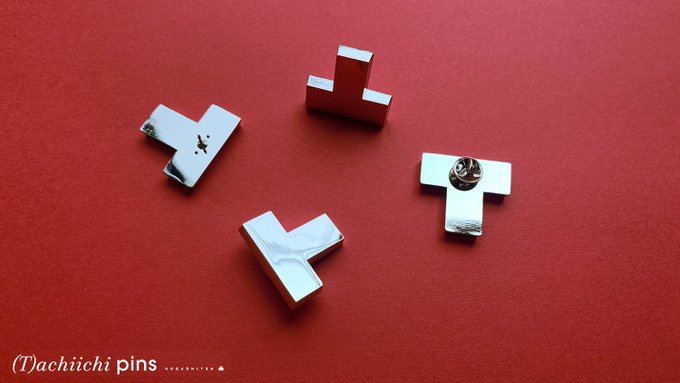 「(T)achiichi pins」#C100 鈴木旬(@tofuboyrecords)さんと「T」のかたちのピンズを作りました。砂と一緒に瓶に詰めて頒布します。よろしくお願いいたします🗼