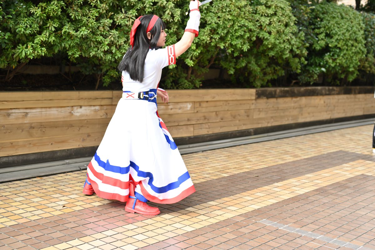 3 13 コスプレ サムライスピリッツ / ナコルル 風でいい感じに髪がなびいてる! 今回は初めてママハハも一緒のアコスタ(・▽・) 陸さん(@iriomoteumiushi)素敵な写真ありがとうございます(≧∇≦) #アコスタ池袋 23/07/10 15:59