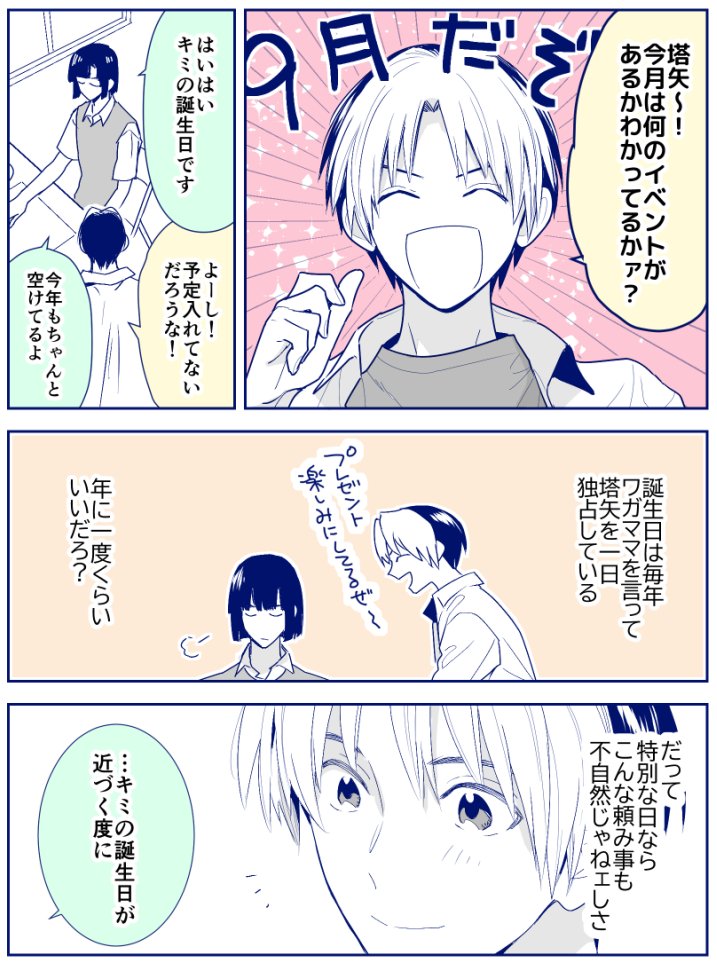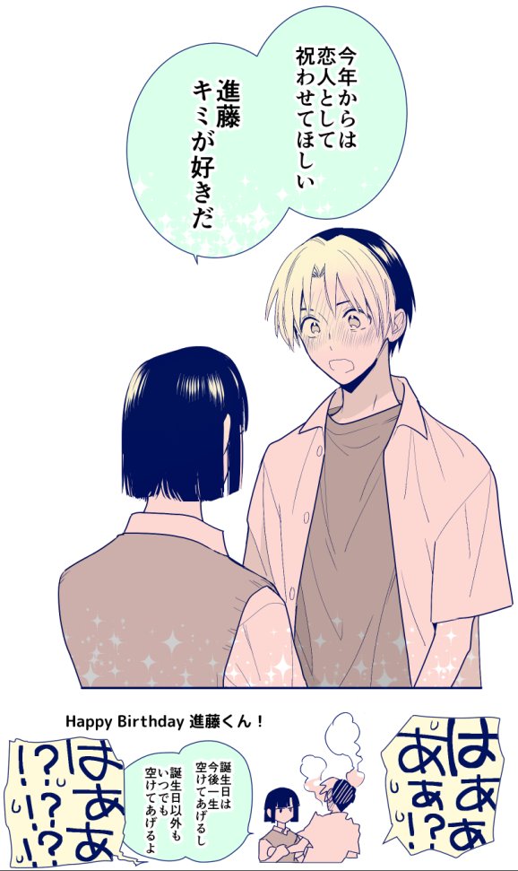 進藤くんお誕生日おめでとう…!!🥳これは去年のマンガです 今日は23時までピクスクでお祝いしてます~!(個人企画です) pictsquare.net/t4ahr3fcnljbob…