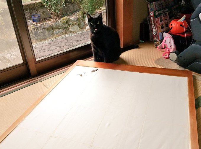 39 102 障子の張替えしてたんやけどパコン!て音したから見たら猫穴開 22/12/04 13:34