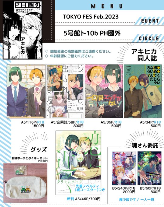 1/8 COMIC CITY大阪123 おしながき #アキヒカ pixiv.net/artworks/10427…