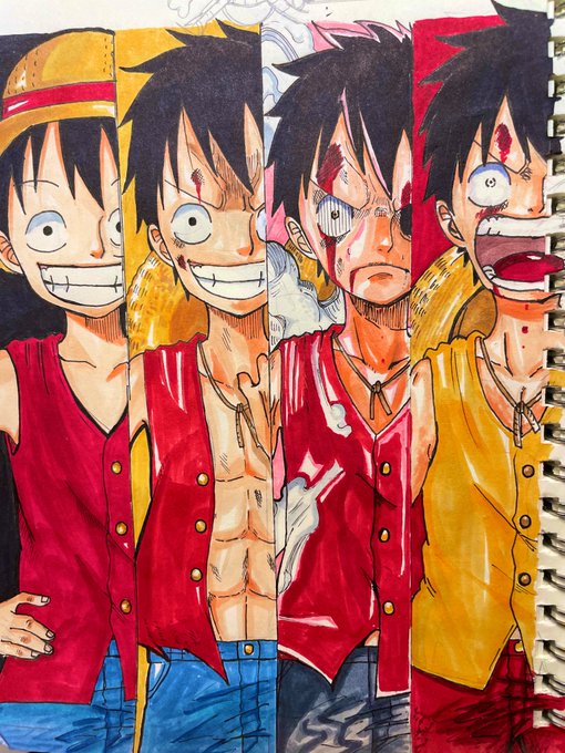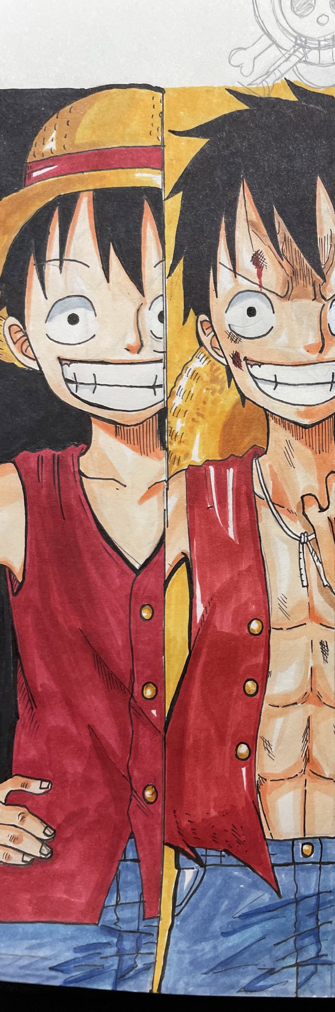 最近ルフィの成長していってる シーンを描いております よかったら見てください(*^▽^*) #ワンピース #モンキー・D・ルフィ #イラスト