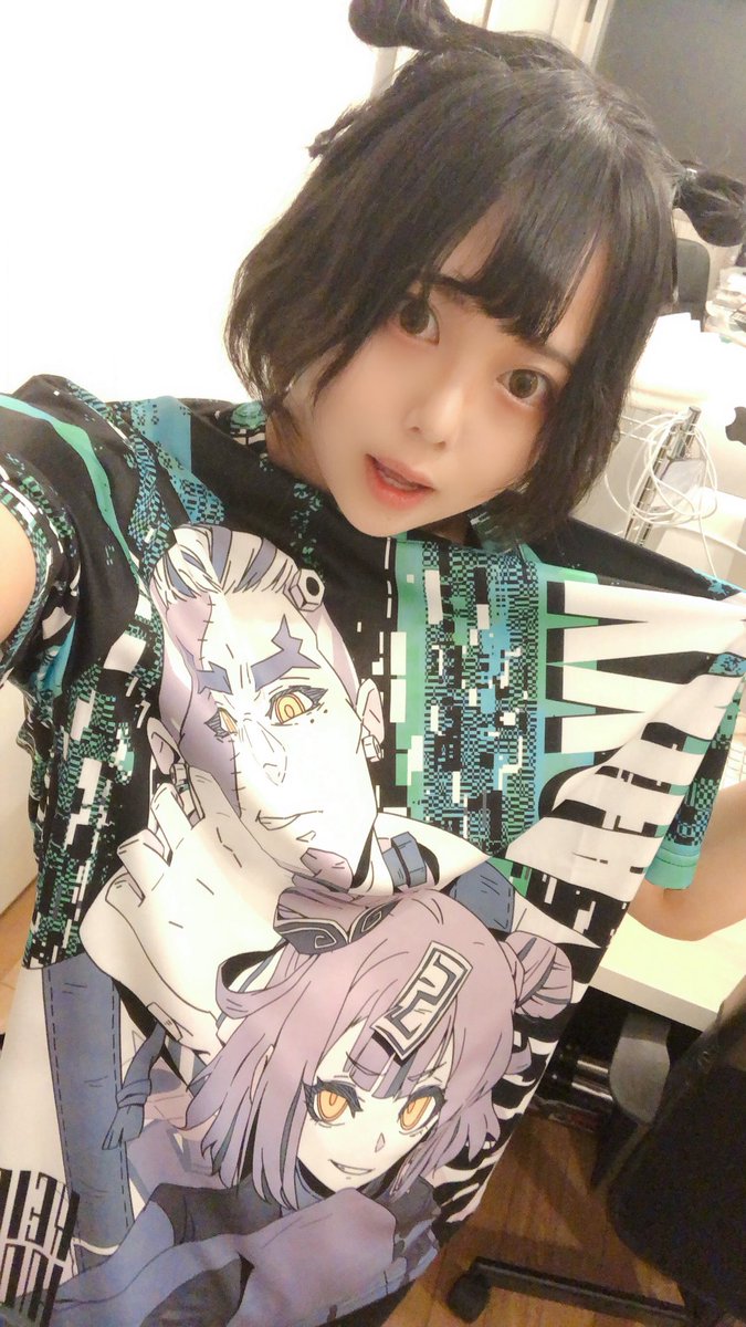 モデルさせていただきました!! 素敵なVtuberデザインのTシャツ着させて頂いて幸せだあああああ!!!!!髪型Ciちゃんっぽくして見た! twitter.com/mushiki_k/stat…