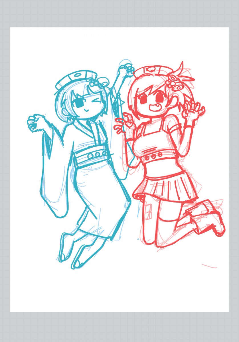 こうして見るとポーズが2パターンしかない… #今月描いた絵を晒そう #イラスト練習中