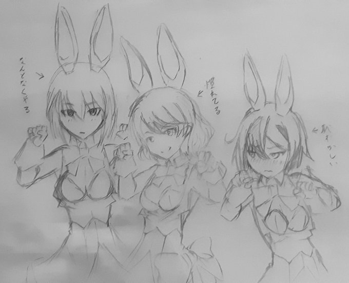 32 71 皆バニー服の中、1人だけビン底眼鏡とうさぎの着ぐるみを着せられた百科文嘉 #アリスギアお絵かき 23/01/17 07:25