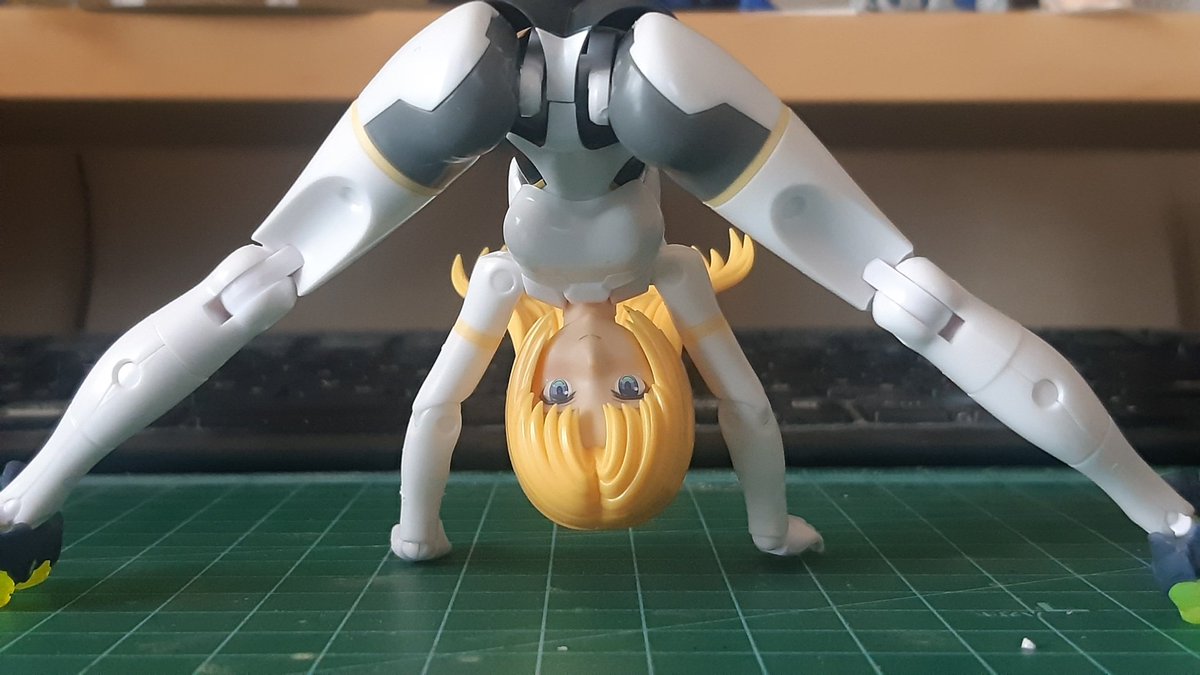 ほぼほぼ素体できたんでアームストロング上院議員のポーズをとらせてみる。 よく動くねぇ(すっとぼけ) #武装神姫 #メガミデバイス