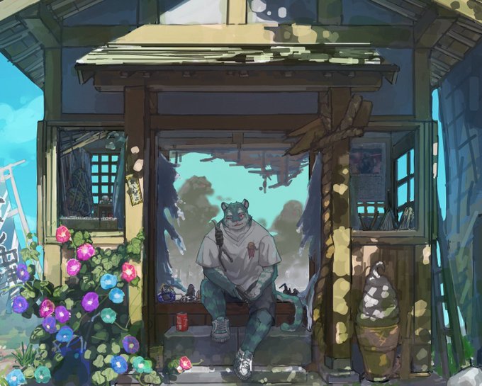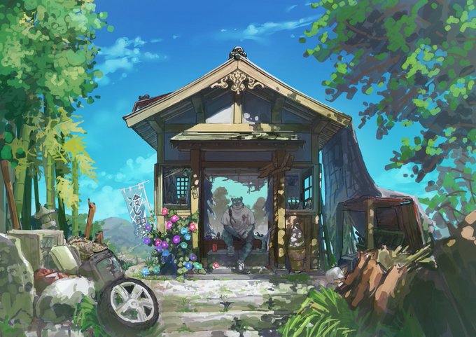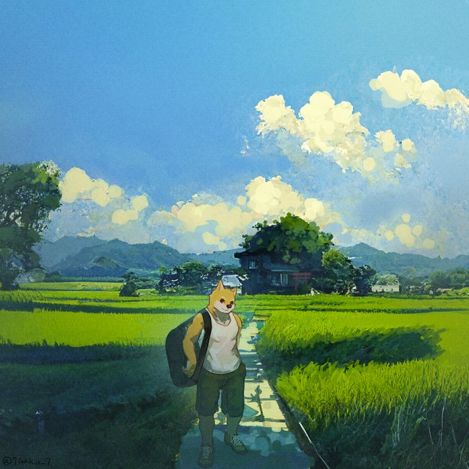 99 594 midjourneyで生成した風景にキャラを描いたもの 22/08/04 23:46