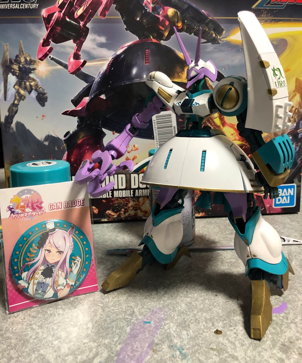 7 15 #ウマ娘 #ガンプラ #メジロマックイーン 白メジロマックイーンカラーのバウンドドック素組み完成😆 白の金縁スカートに内側はコーラルブルーに塗ってみました 21/09/14 20:38