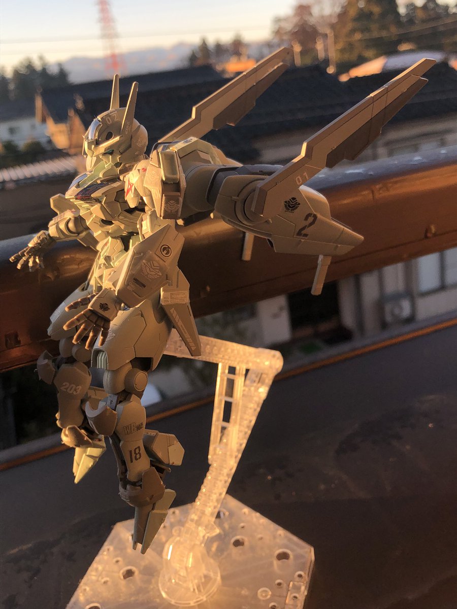 2 7 #ガンプラ #水星の魔女 #エアリアル 朝日に照らされるエアリアル☀️ 覚悟の朝のクライマックス感が好き😆 23/01/19 07:50