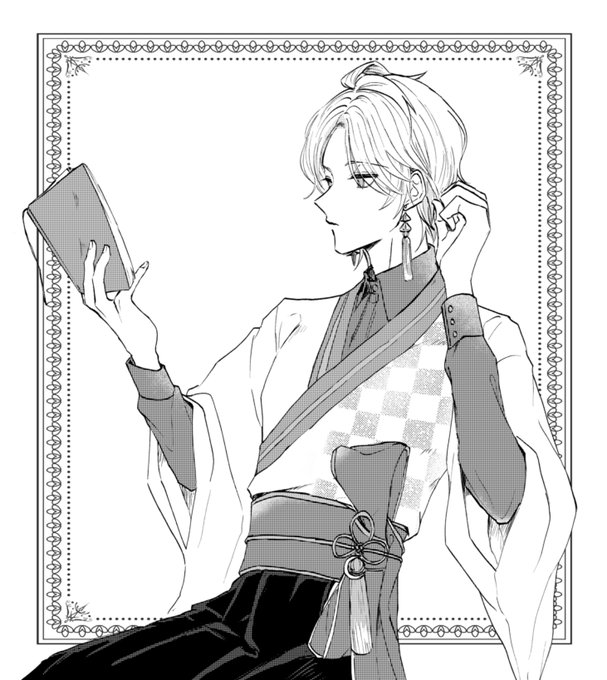 和服と伸びかけ髪だと屋敷で籠ってるうちに髪のびた研究者みあってめっちゃ良いなという絵 #描いた晴