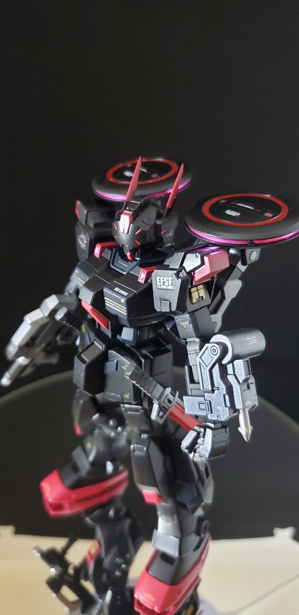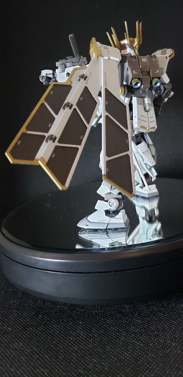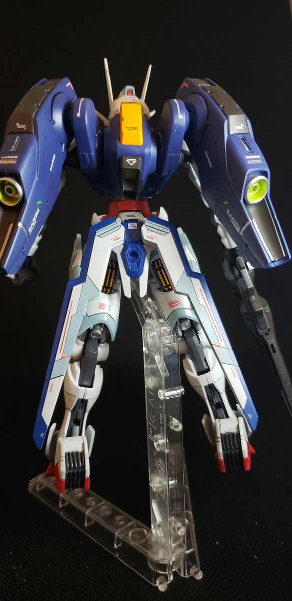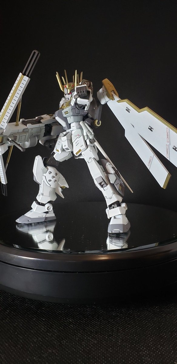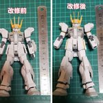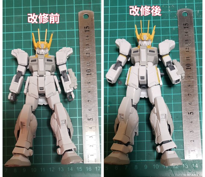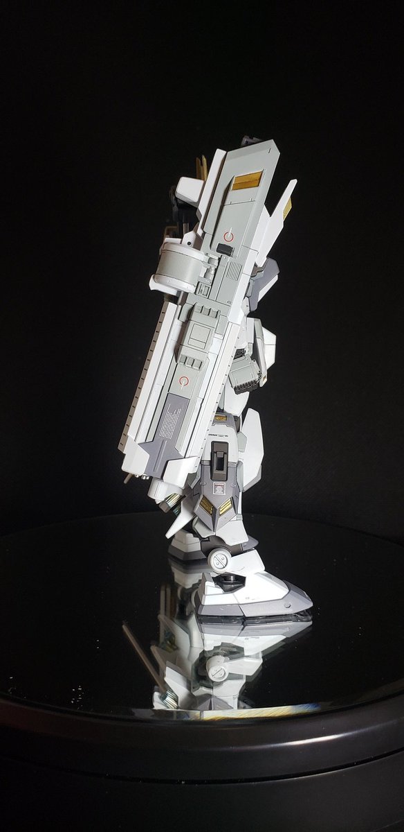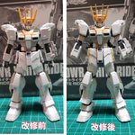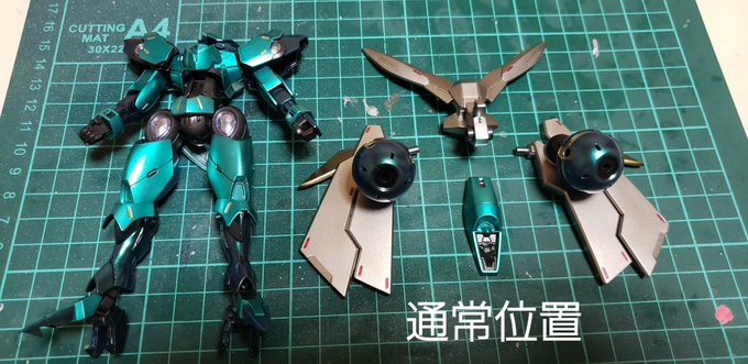 今回の改修ポイントはバックパックと足のクロー部のシャープ化、肉抜き埋めだけです☺ バックパックは通常に取り付けるとうさ耳にみえてしまうので上下逆に取り付け! ウエストあたりから出ていた羽根みたいのも背中から出るシルエットになりました! #ガンプラ好きと繋がりたい