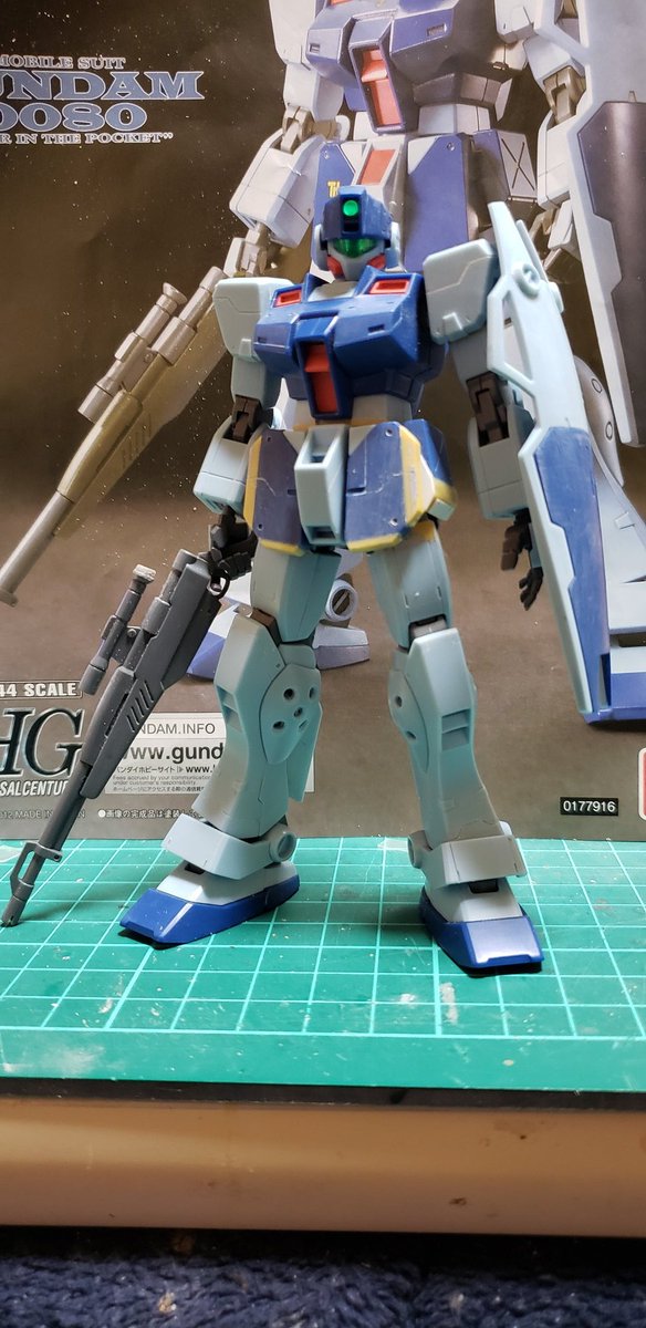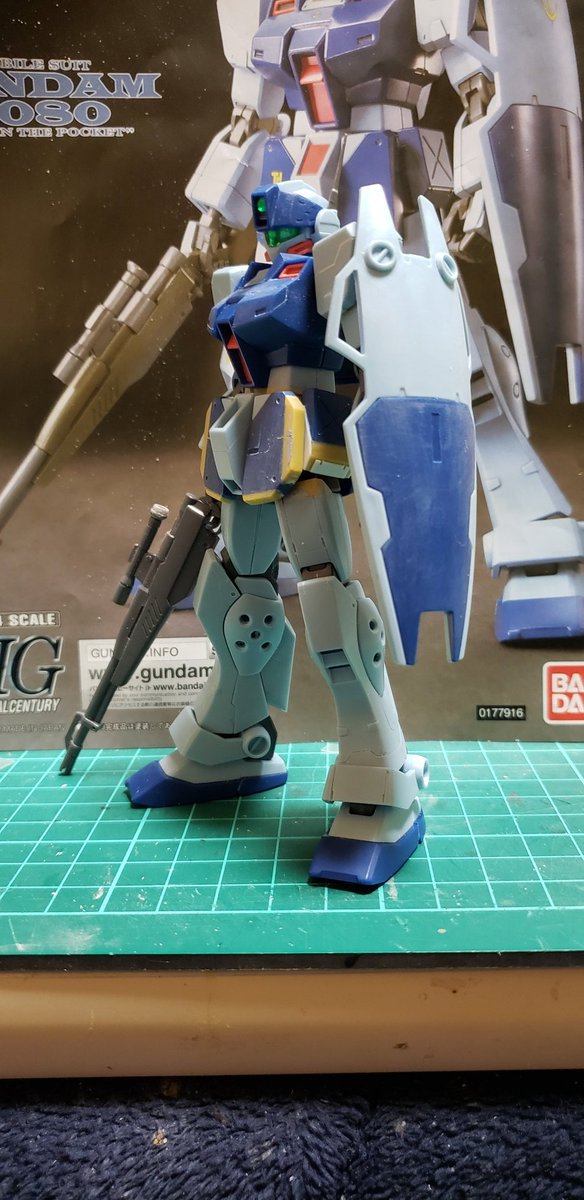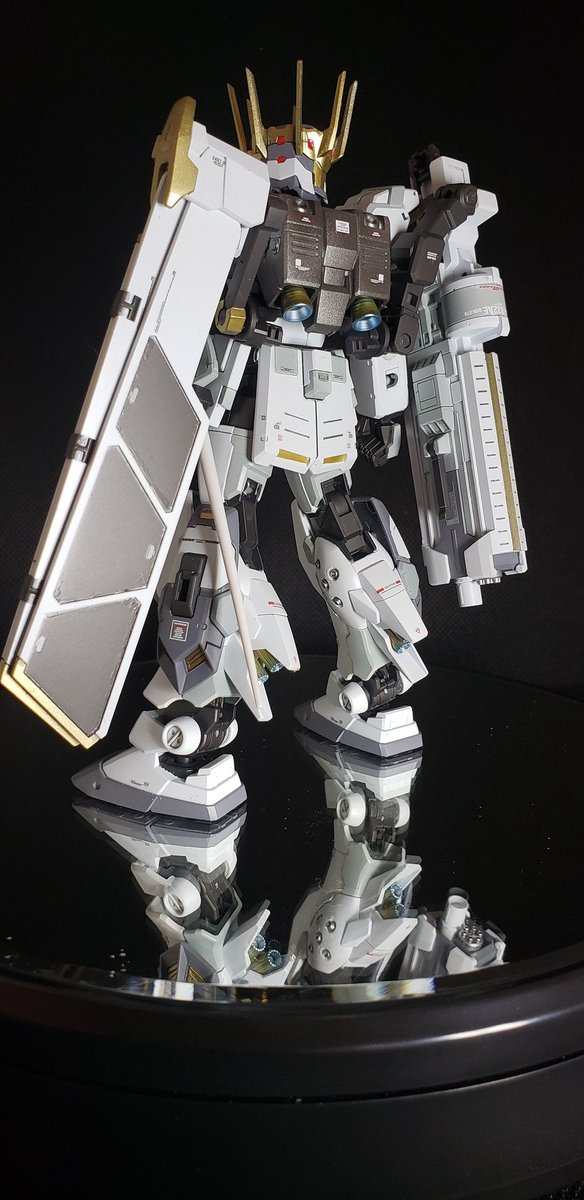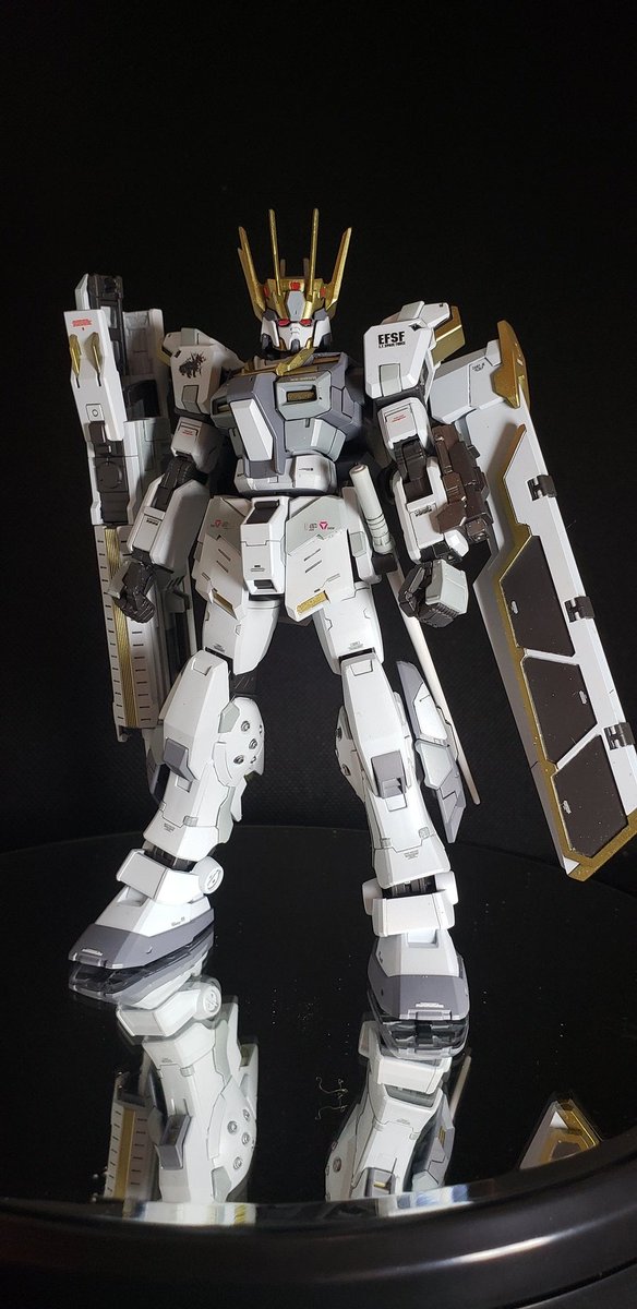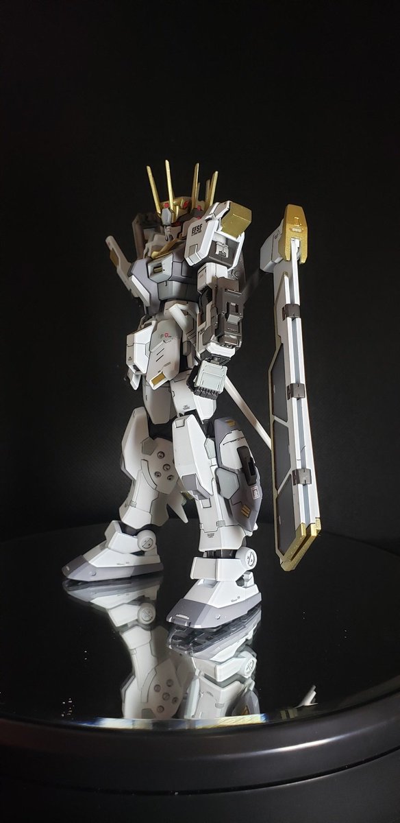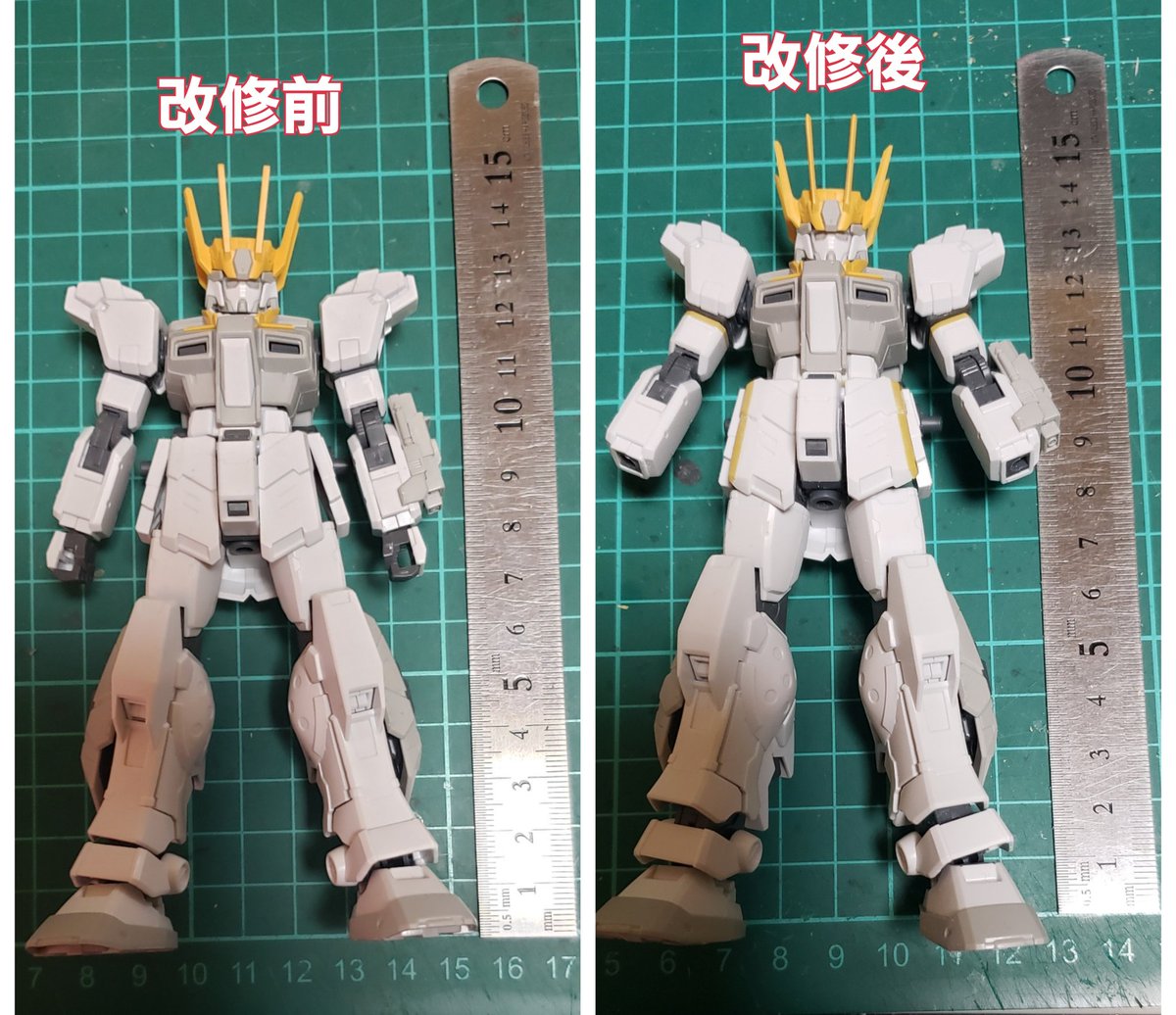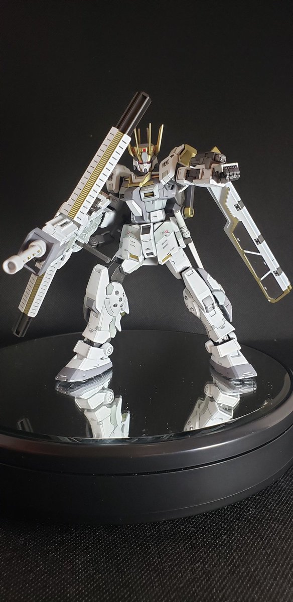 今回の改修箇所 ・股関節軸3mm下に移動 ・腹部2mm延長 ・腕もバランスを合わせるために1mm延長 ・頭部アンテナシャープ化 塗装 ボディ色の白は青を数滴混ぜた冷たい感じのクールホワイトにしてます。 関節部は最近お気に入りのグラファイトブラック。 #ガンプラ好きとつながりたい