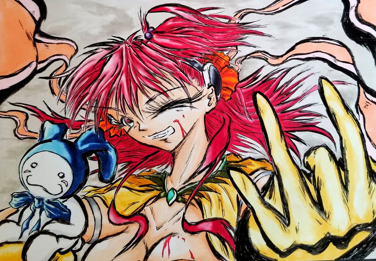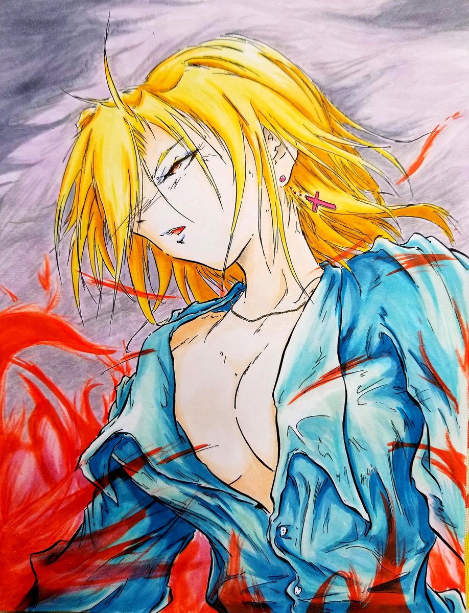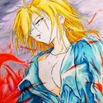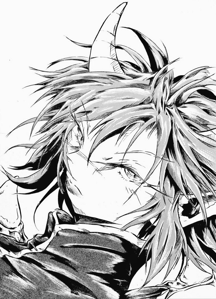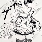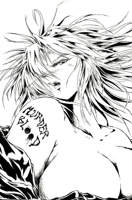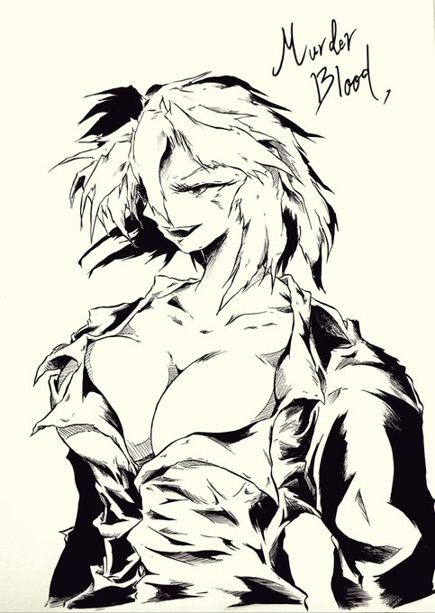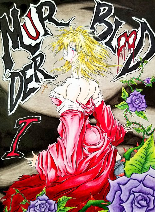 #自分の代表作だと思う絵を一枚だけ選んでみよう やっぱりこの1枚ですかね。 自分の(一応)代表作であります「MURDER BLOOD」の1巻表紙を飾った絵ですし、一時期アイコンにしていたこともあるので。表紙絵として最初描いた絵を没にして描き直した、という意味で思い入れもあるイラストですね。