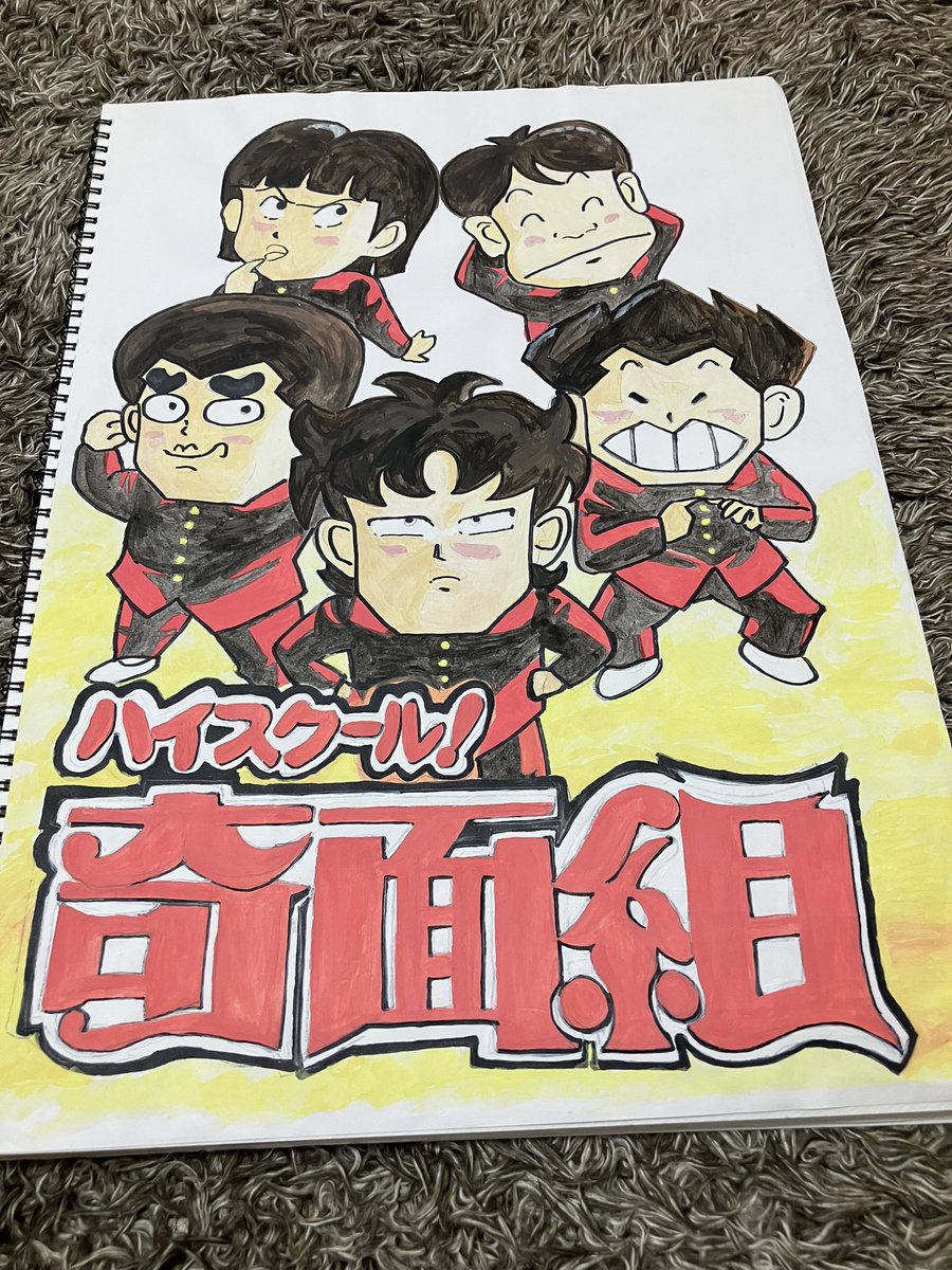 1 22 ハイスクール奇面組を書きました〜 ※一部写しました! 色塗りは水彩画絵の具です^ ^ 主題歌はうしろ指さされ組でしたねぇ 懐かしい… #ハイスクール奇面組 #水彩画 #うしろ指さされ組 #懐かしい漫画 #アニメ #少年ジャンプ 22/08/06 10:48