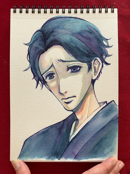 万年筆用瓶インク、水筆、ガラスペンで描きました 芥川龍之介のイメージです #インク沼