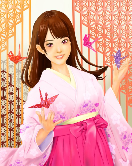 0 3 和風イラスト描きました。 着物は卒業袴にしました。 #和風イラスト #着物イラスト #厚塗り #イラスト 23/03/21 13:52