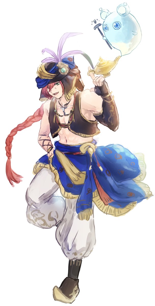 これはコルヴォ生まれコルヴォ育ちなグ・ラハを描きたいけど服装がわからないからサベネアンを着ているグ・ラハと魔法のランプの落書き