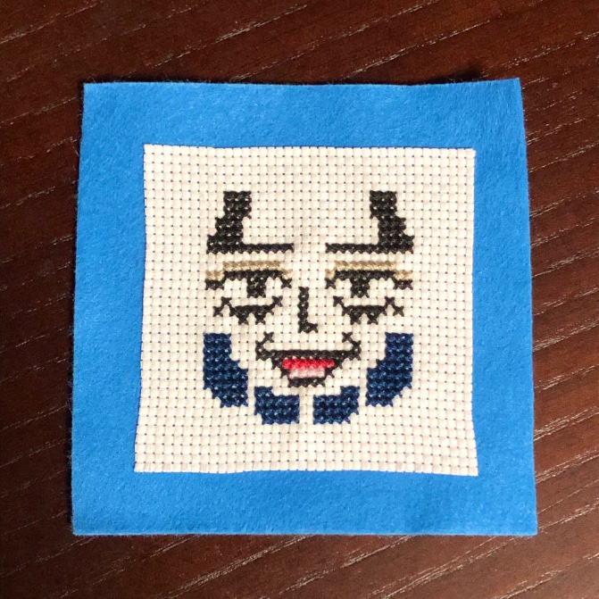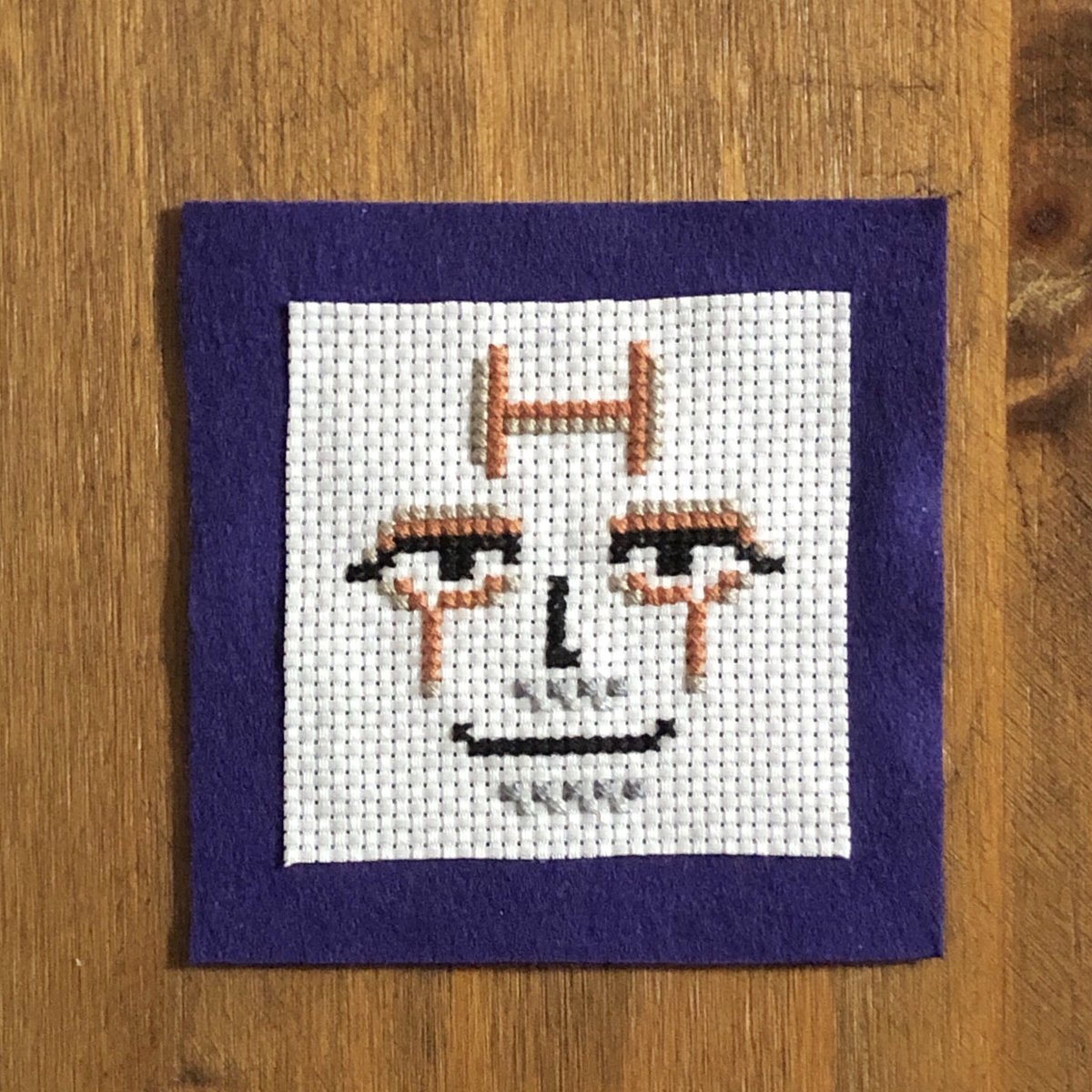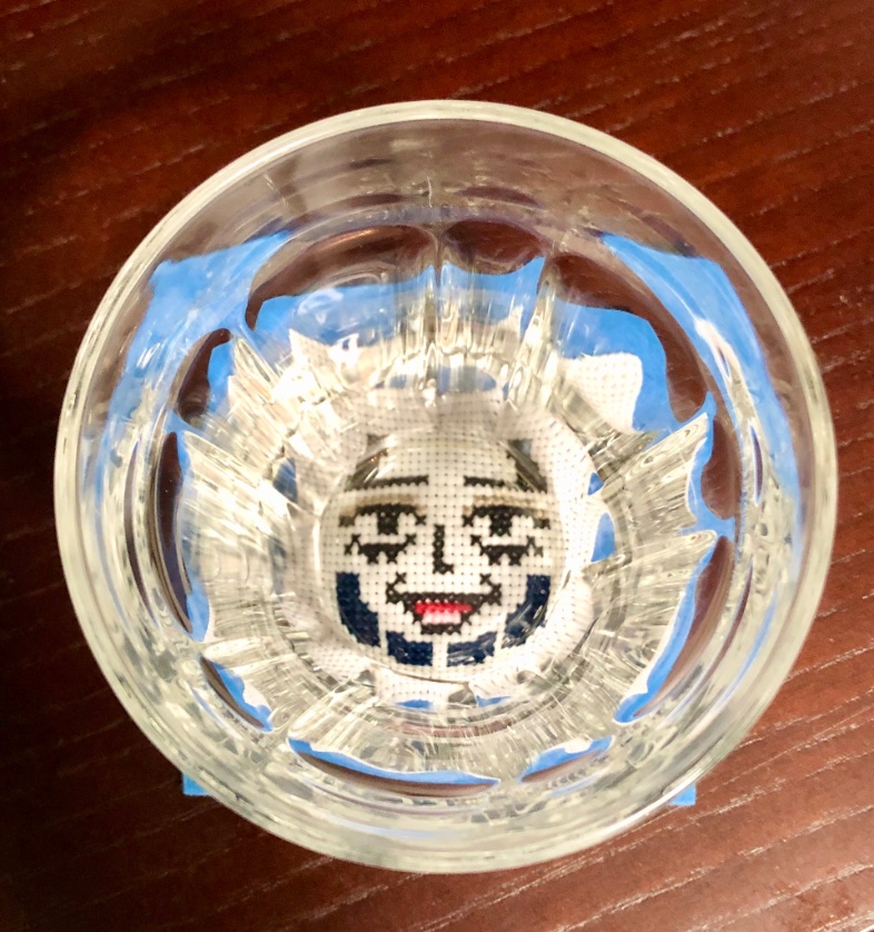 クロスステッチ菊田さんコースター🧵 ちなみに飲み終わったコップ越しに目が合います(制作時間:1時間半) #ゴールデンカムイ版深夜の真剣お絵描き60分一本勝負 【お題】菊田杢太郎(菊田特務曹長/と〇〇も可)