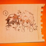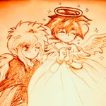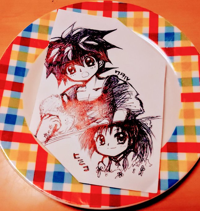 #渡部クラマ誕生祭2022 #渡部クラマ生誕祭2022 クラ誕22:00スタート今完成💦クラマ初描きしてたら 「七魂の黒フィンガーレスグローブ…ワタルのと似てる?」 突然2人に「背中あわせで拳をコツン🌟」とさせたくなりワタルを描き始め遅刻 心の目で 「おめでとう」 「あんがとよ🎵」 🤜🤛🌟ってしてね