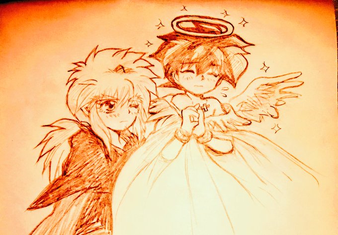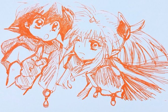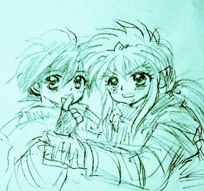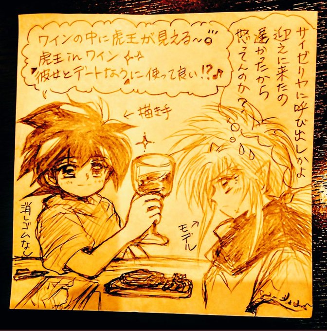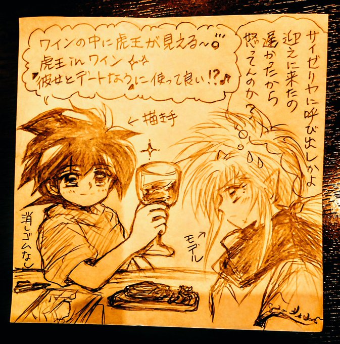 #みなさん2年前の今頃はどんな絵描いてましたか 2年前のワタル誕から1ヵ月後の練習用絵が偶然出てきたので追加☆ トラに角とキバが無かったりワタルも描き方模索中なのか荒いけど💦懐かしさ補正でニコニコしてきた~😁🎵←お年…?
