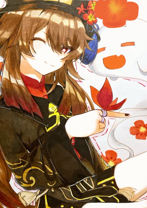 アナログイラストを加工したものです!#胡桃 #原神 #イラスト