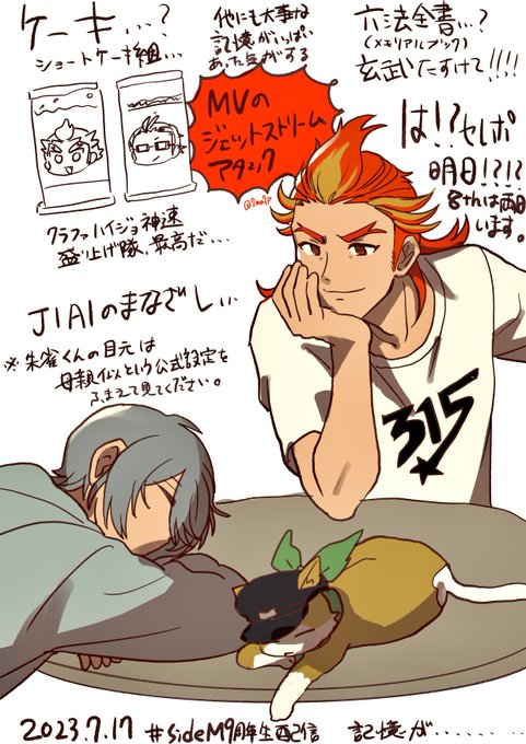 神速ハイジョクラファ組ありがってぇ〜‼️🥳‼️の頭だったのがその前後含め情報量アホすぎて脳味噌訳分からんくなった配信でした8th盛り上げ隊かわいい〜(脳死) とりあえず朱雀くんの目元は母親似という情報をここへ書き残しておきます、味わい深いですね #SideM9周年生配信