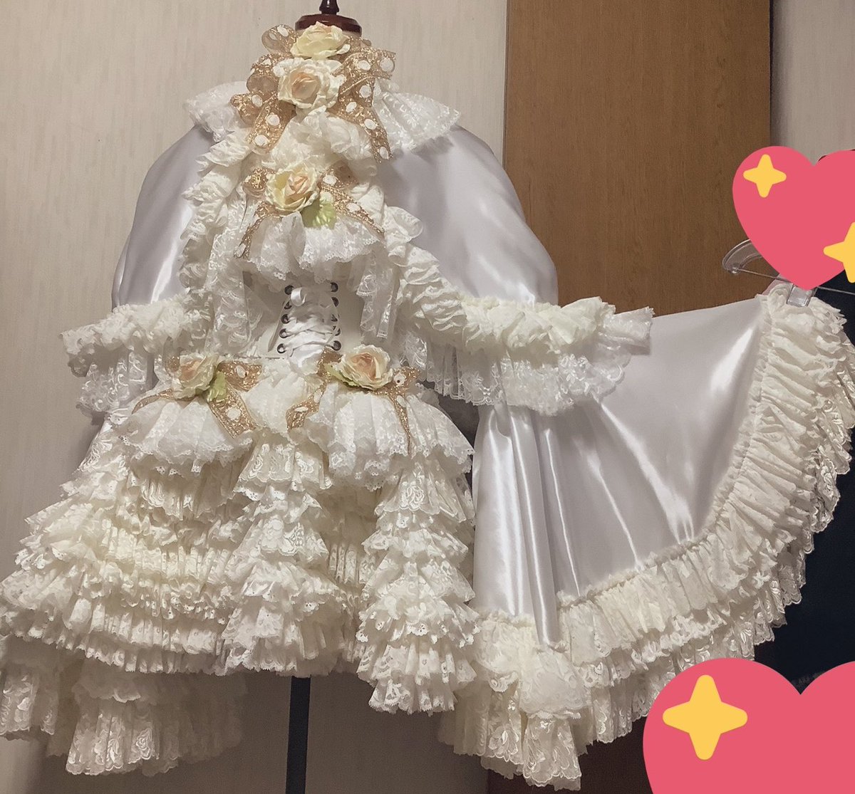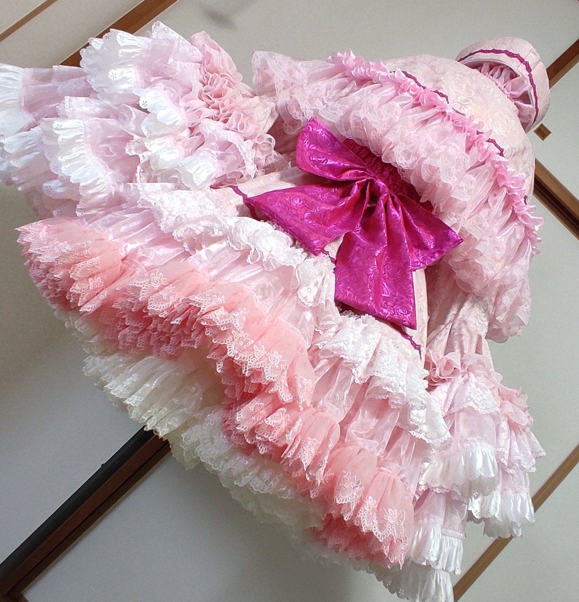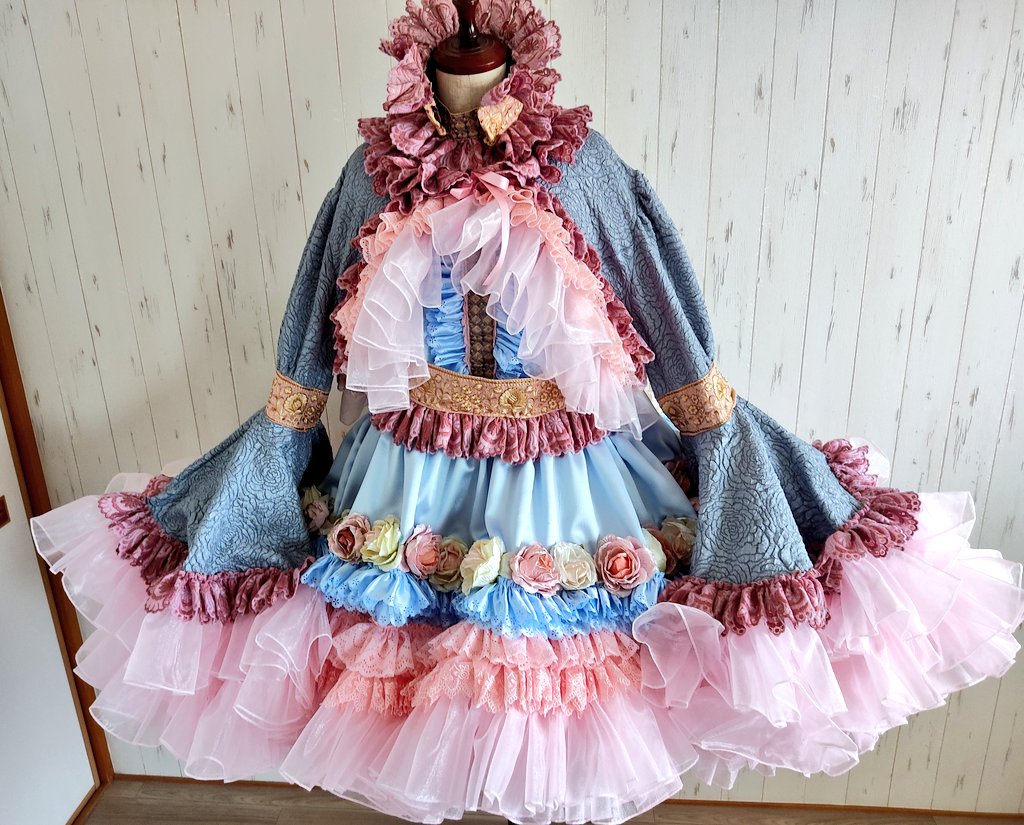 (緩募 オーバーキルパニエが付いてくる合計レース&フリル数400メーター位の薔薇姫ドレスセミオーダー1着のみ受付中 納期5ヶ月、分割払い五回まで可 相互様はDMへ、違う方はフォロー&リプで一時的にフォロバしてDMします。 よろしくです!