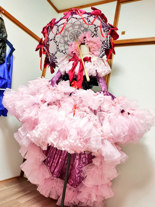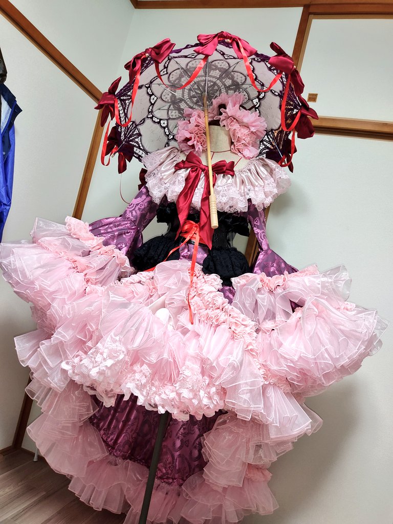 !アレンジ衣装注意! 東方Projectの八雲紫アレンジ衣装完成しましたー!! 500メーター位フリル使った気がするよ… 中身はロングオーバーキルパニエとワイヤーパニエ。 ボリューム写真じゃ伝わない! #あとりえまどろみ