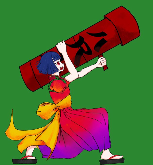 2 3 八尺バズーカどーーーん💥 小粋な背景も思い浮かばず単色でごまかす人 #イラスト 23/03/22 18:59
