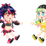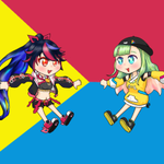 調子に乗って大蔦エルちゃん増やしてみた。エビフライ。そして謎のどんたくドアラマンと戦わせてみた。 #えるあーと #よかと描いとーと