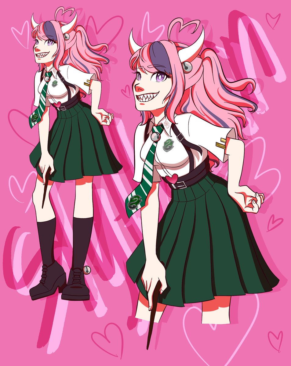Satan attending hogwarts?! Connor can slam Slytherin all he wants, it’s the best house for sure 😌 💅 Just kidding 😉 #ironmouseart #Ironmouse Slytherin pride!